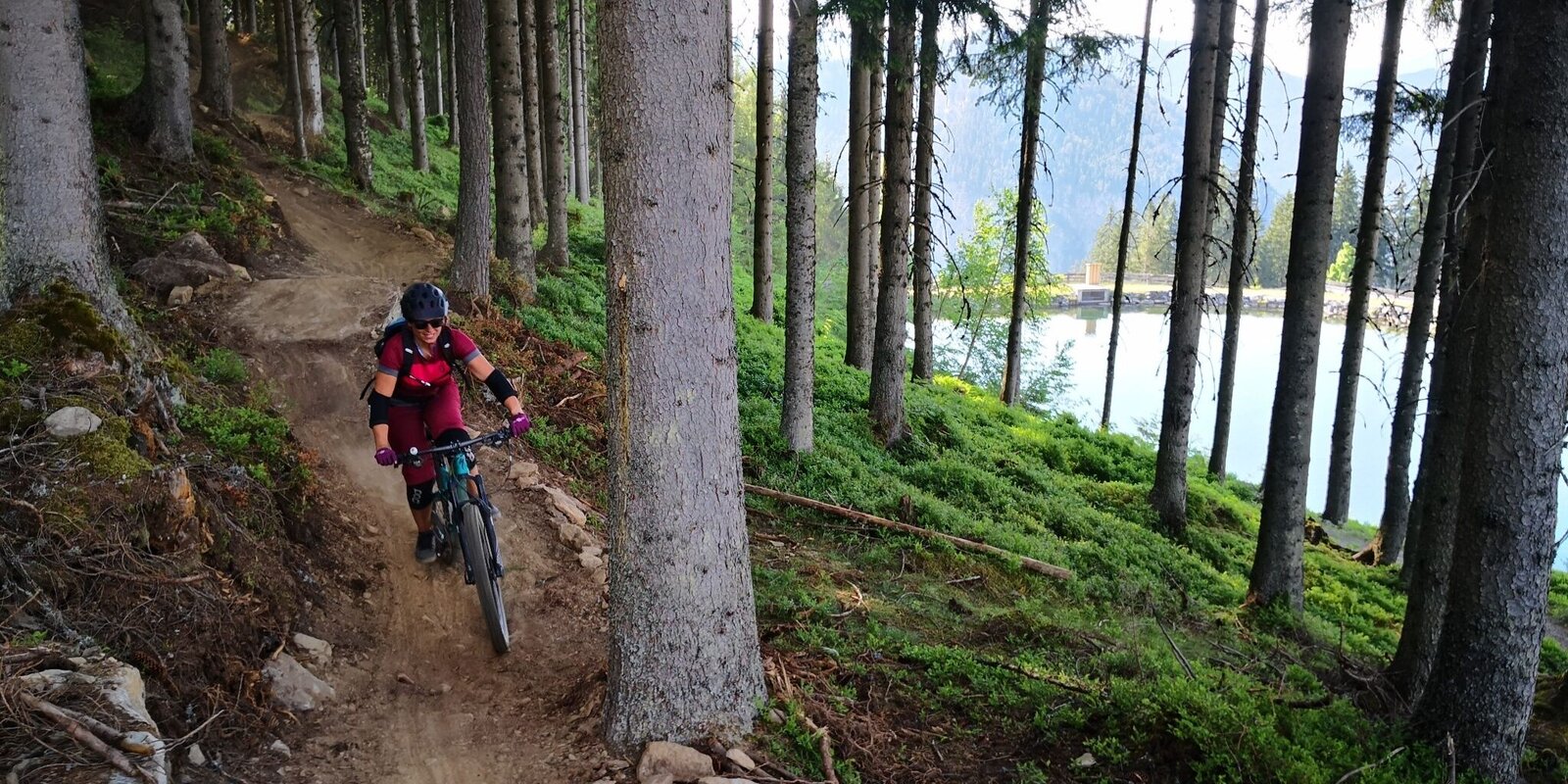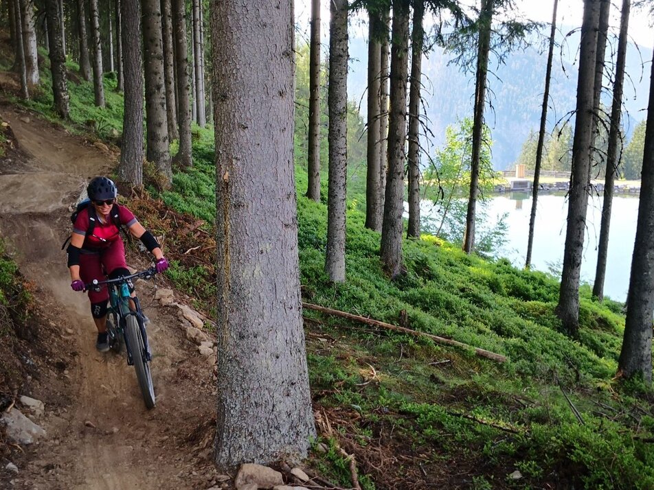 The "Route 66", named after the old hiking trail number, is a flowing forest trail with soft, needle-covered ground. After a short forest path passage, a newly built and narrow trail section begins, with tighter bends.