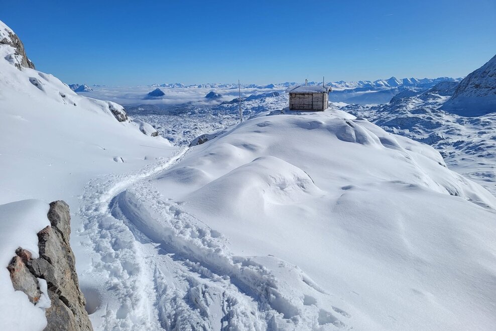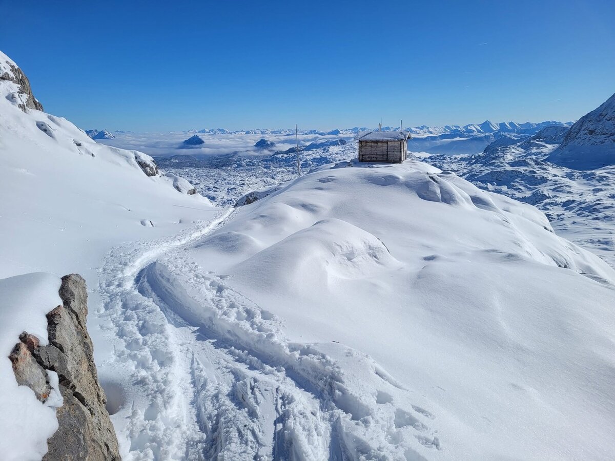 Up to the Gjaidalm, the route follows the classic Dachstein crossing. From the Dachstein mountain station, a short descent to below the Dirndl on the groomed and marked trail, followed by a short ascent towards the Seethaler Hütte. At the marked turn-off towards Simonyhütte, the easy descent begins via the groomed and marked trail along the western edge of the Hallstättergletscher to Simonyhütte (refreshments available). From there, continue along the marked and groomed trail with short ascents to the Gjaidalm (refreshments available).