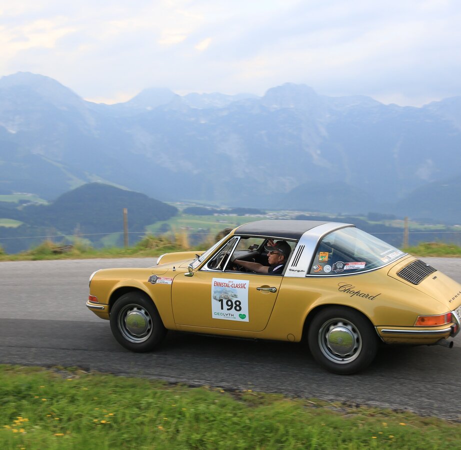 The landscape awakens longings for a summer resort. Lake blue and forest green as far as the eye can see. No wonder that the stars of the ENNSTAL CLASSIC prefer to let their automobile chords ring out here.