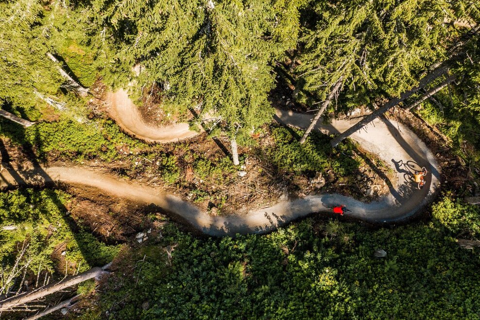 The first section runs through the forest and before you get to the final section, you have to ride a short stretch on the Reiteralm road. After the short ride, the final section begins, which leads directly to the Preunegg Jet valley station.