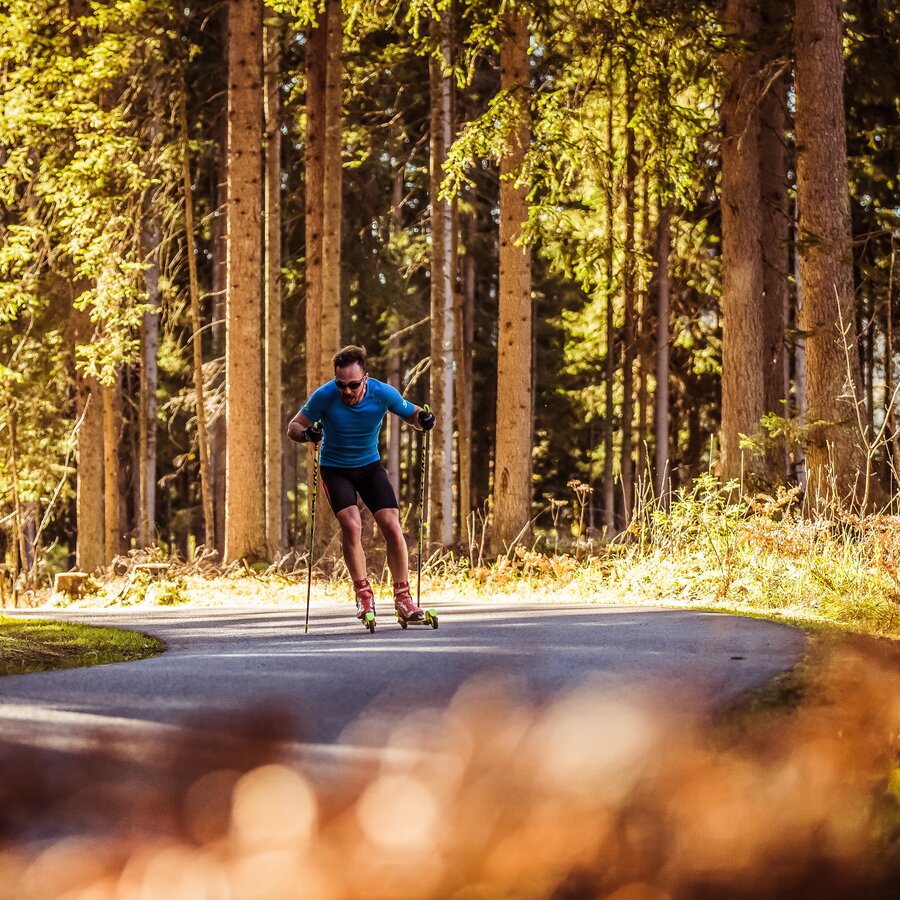 Ramsau am Dachstein offers Nordic skiing opportunities not only in the winter months, with its 220 km of cross-country ski trails and the World Championship ski jumping facility, but also in the summer, you can enjoy training sessions on the 5.7 km long roller ski track on the Kulmberg. Five different loops of varying length and difficulty allow professional athletes to complete a perfect endurance workout. Directly adjacent to the track is the small-caliber shooting range with 12 lanes and two air rifle shooting stands. But the roller ski track isn't just for endurance athletes. Recreational and hobby athletes, beginners, and children will also find what they're looking for.
