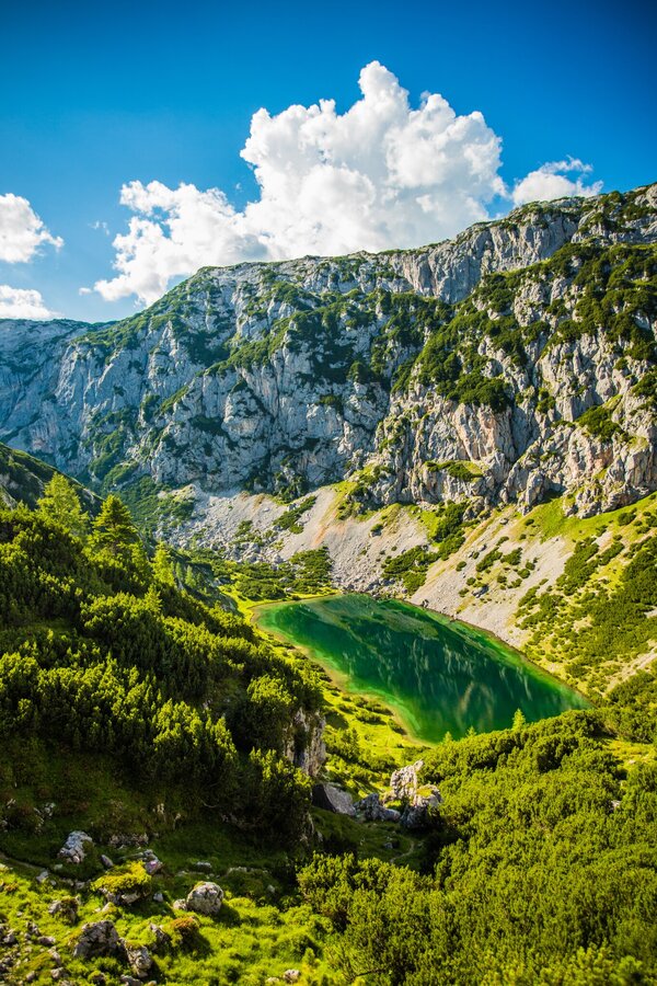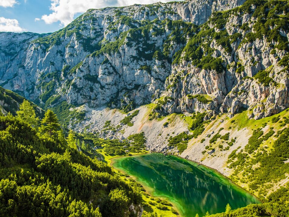 The return journey follows the same route. An alternative route to the valley is to take hiking trail #66 through the Seetal valley up to trail #616 and then along this to the Guttenberghaus, and from there back to Ramsau am Dachstein.