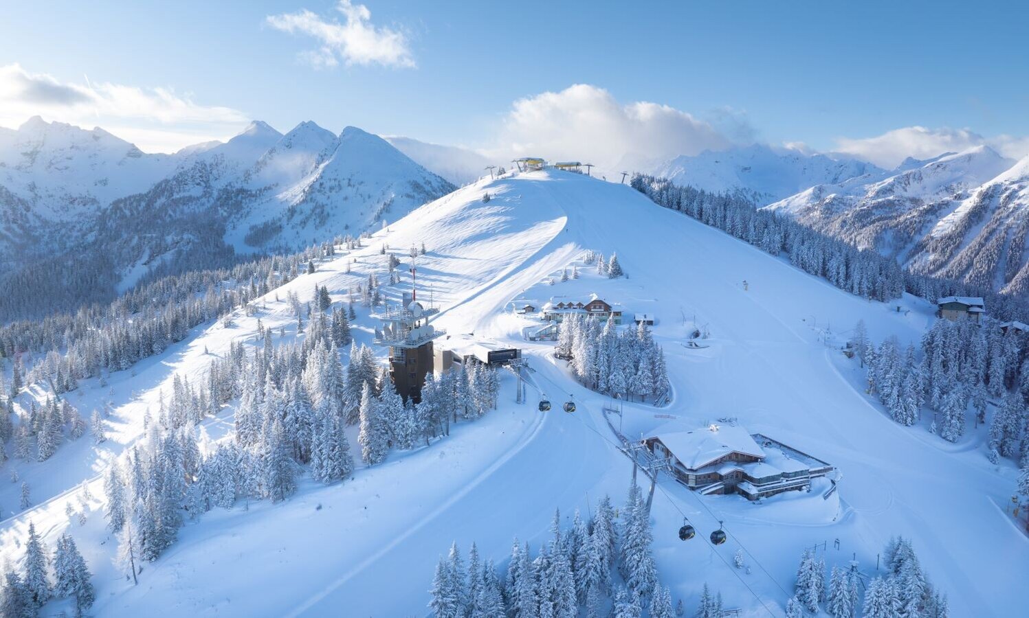 A beautiful and short ski tour, also suitable for those who have just started ski touring. Not far from marked terrain, but still away from the busy slopes. The ascent is quite easy for the most part - only the last 100 m to the summit are a bit more challenging and it is better to take them on foot instead of your skis. The descent into "Mitterhaus" is a true delight. From there, you either take Mitterhausbahn chairlift to get back up or you ascend by skis.