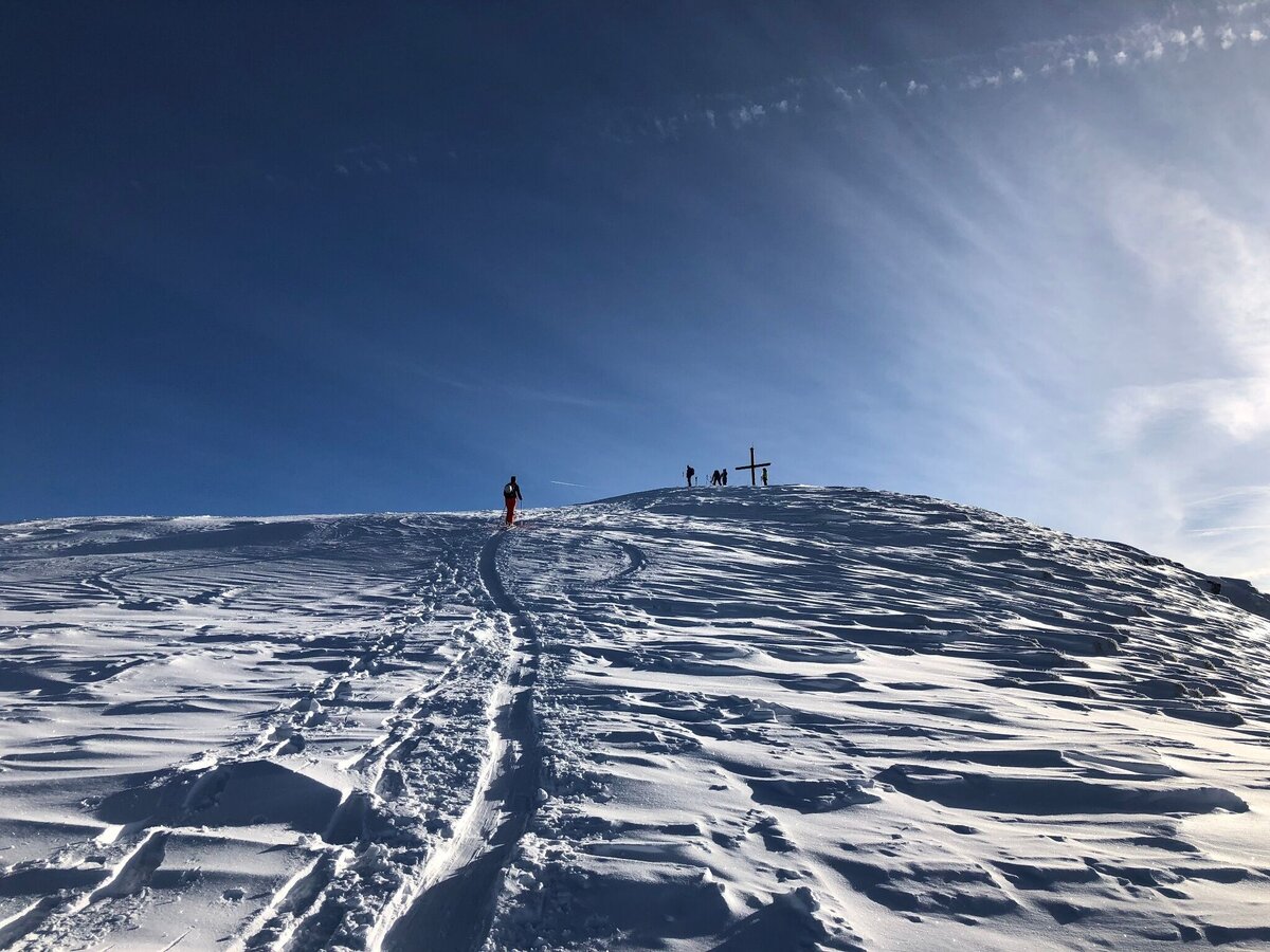 The first part of the descent is in open terrain via several variants back to the Galsterberg. From there, you can continue on the piste back down into the valley. This only applies during the opening hours of the piste from 8:30 to 17:00! It is then not permitted to ski or walk on the closed pistes.