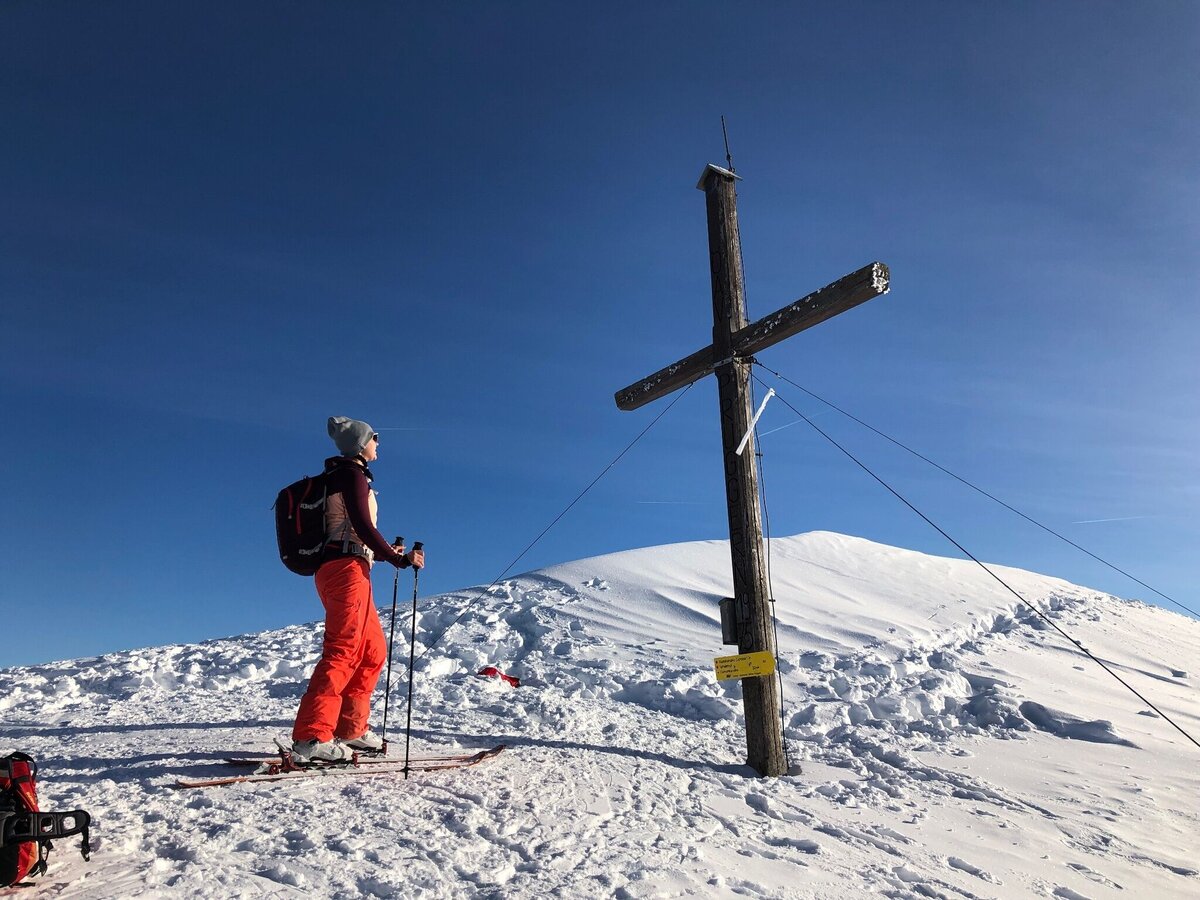 The Pleschnitzzinken ski tour starts at the GUB Galsterberg valley station directly at the start portal and after a short stretch on the piste leads into the forest, where a signposted route continues. The route continues idyllically through snow-covered trees up towards the GUB mountain station, with sections of piste and forest passages. The route then runs along the summer hiking trail to the summit of the Pleschnitzzinken. Here you are then in open terrain and can put your technique to the test with some hairpin bends up to the Pleschnitzzinken.