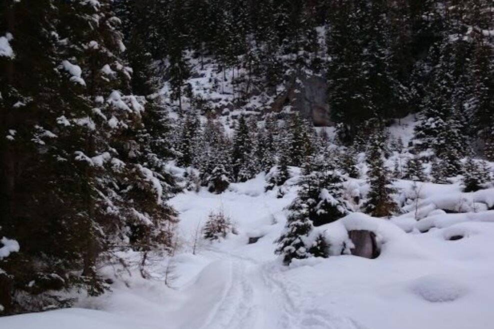 - Avalanche beacon, probe and shovel are essential in open terrain.