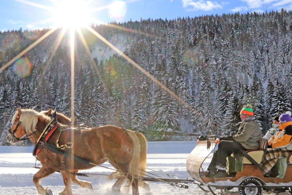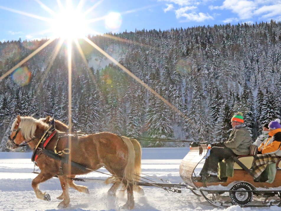 Rides with the horse-drawn sleigh have to be booked in advance. In Pichl-Vorberg, family Pitzer of the Oberhorner farm is your provider: +43 6454 7369. There is a minimum fee per sleigh. Additionally the prices depend on the length of the tour agreed upon with the respective provider. Kids up to 10 years get a 50 % reduction. If the ride ends after 7 pm there is a night shift premium!