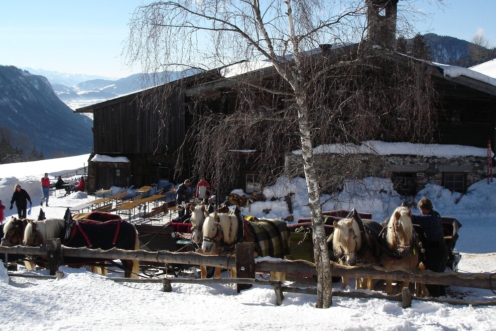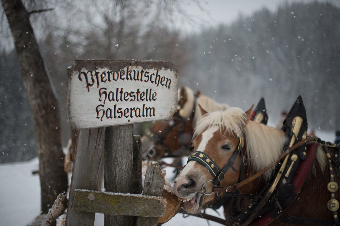 Explore Pichl-Vorverg on top of the horse-drawn sleigh. The ride takes you from Oberhorner farm at Vorberg to Rösteralm inn and 400-year old Halseralm inn between the Halserberg and Rittisberg mountains. If you like, get a refreshment, warm drink or a snack at one of the inns, before you head back to Oberhorner farm. Shortly before you arrive, there is another possibility for a stop - the "Jausenplatzl" of Astlhof farm.