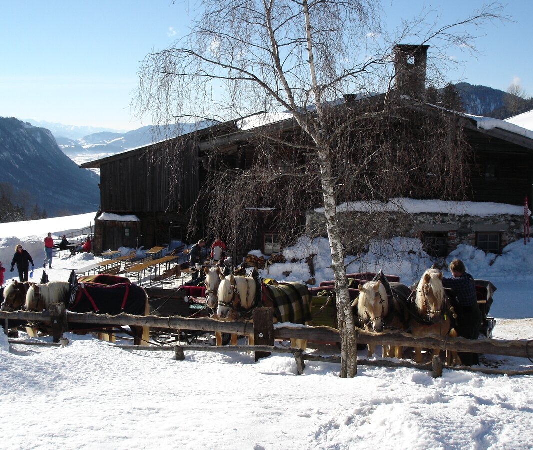From the meeting point at Oberhornerhof farm the ride starts out on Pichl-Vorberg, passing by the farms of Brandstätterhof, Faslhof and Astlhof (with "Jausenplatzl" inn). At pension Arnika the ride takes you into a short section of forest on the Eastern slopes of Halserberg. Soon, your sleigh route meets the one coming from the village of Ramsau and now takes you westward to the winter chalets and inns between Halserberg and Rittisberg. The route ascents just a bit towards Rösterstube inn, and a few minutes further you reach Halseralm inn. If you like, you can stop for refreshments at one of the inns, before your sleigh heads back to Oberhornerhof farm. Remark: of course the route always depends on the weather conditions and firmness of underground!
