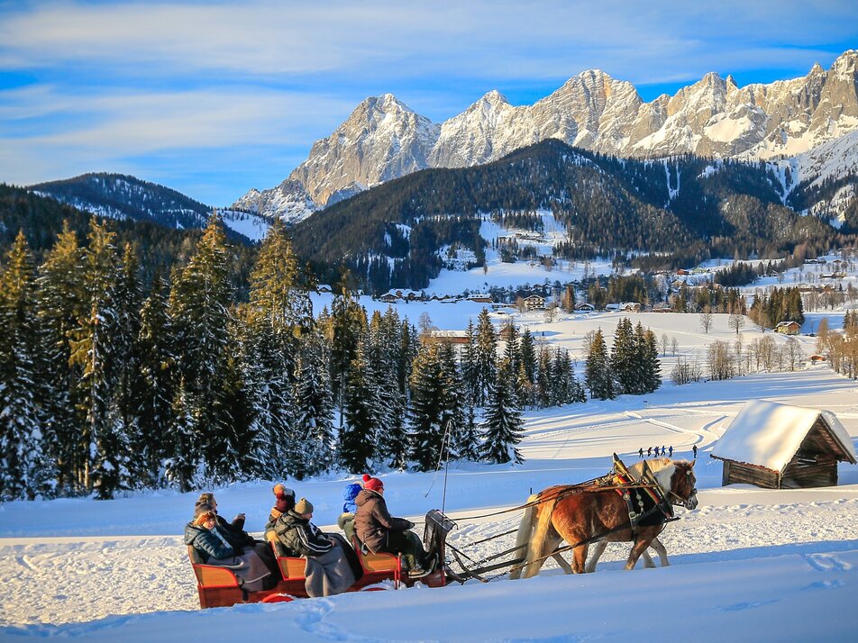 Beautiful and a bit longer ride on the horse-drawn sleigh, which is very sunny most of the time. The ride connects Pichl-Vorberg with Ramsau-Vorberg and has Gasthof Stocker and Frienerstube inns to stop for refreshments on the way. Don't forget your sunglasses - it might be sunny :)