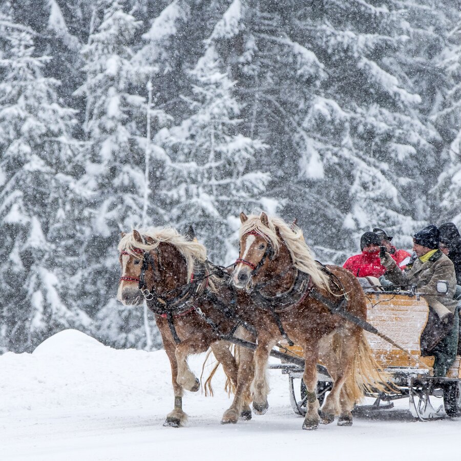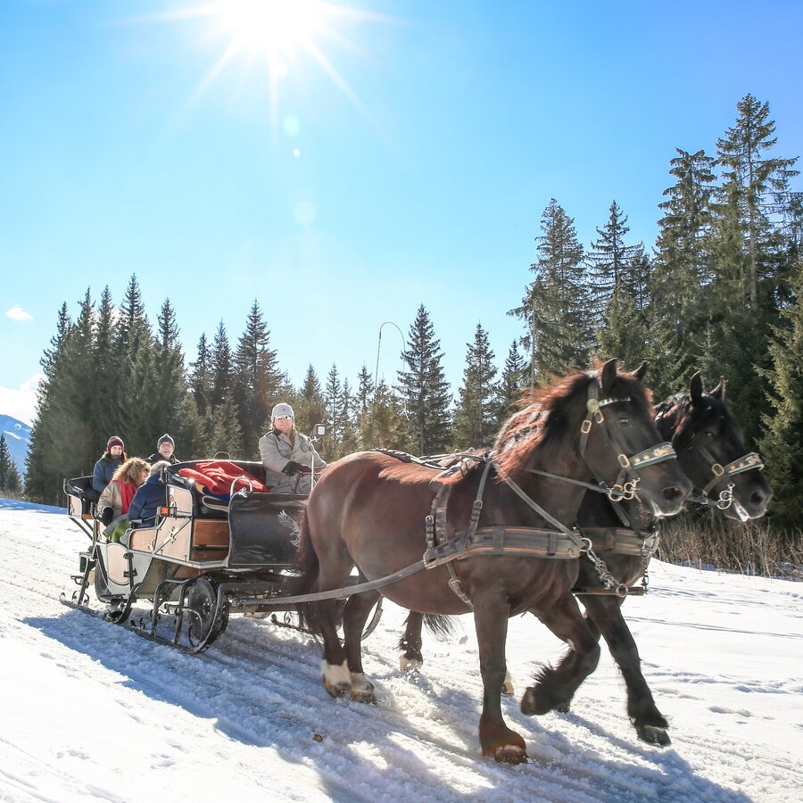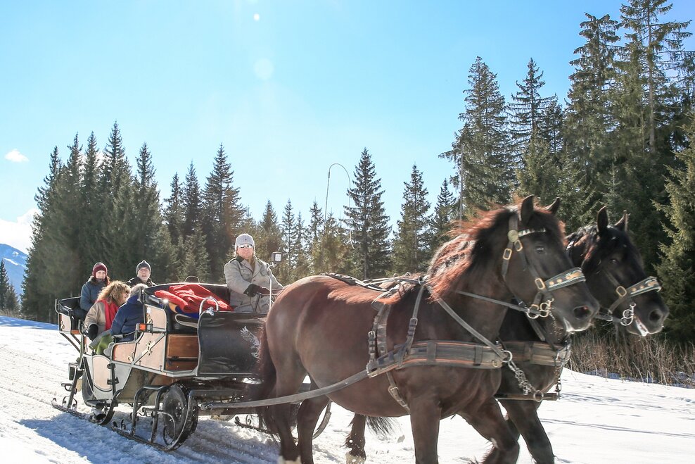 Rides with the horse-drawn sleigh have to be booked in advance. In Pichl-Vorberg, family Pitzer of the Oberhorner farm is your provider: +43 6454 7369. There is a minimum fee per sleigh. Additionally the prices depend on the length of the tour agreed upon with the respective provider. Kids up to 10 years get a 50 % reduction. If the ride ends after 7 pm there is a night shift premium!