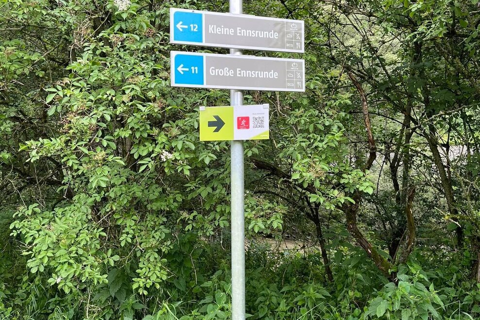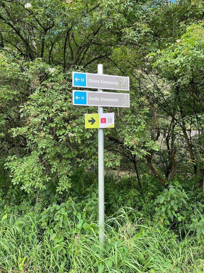 East estate to the railway underpass, turn right and along the railway to the second railway underpass, turn left to the Enns and west along the Ennsuferweg - upstream to the footbridge over the Walchenbach to Gardening Thiel to Öblarn.