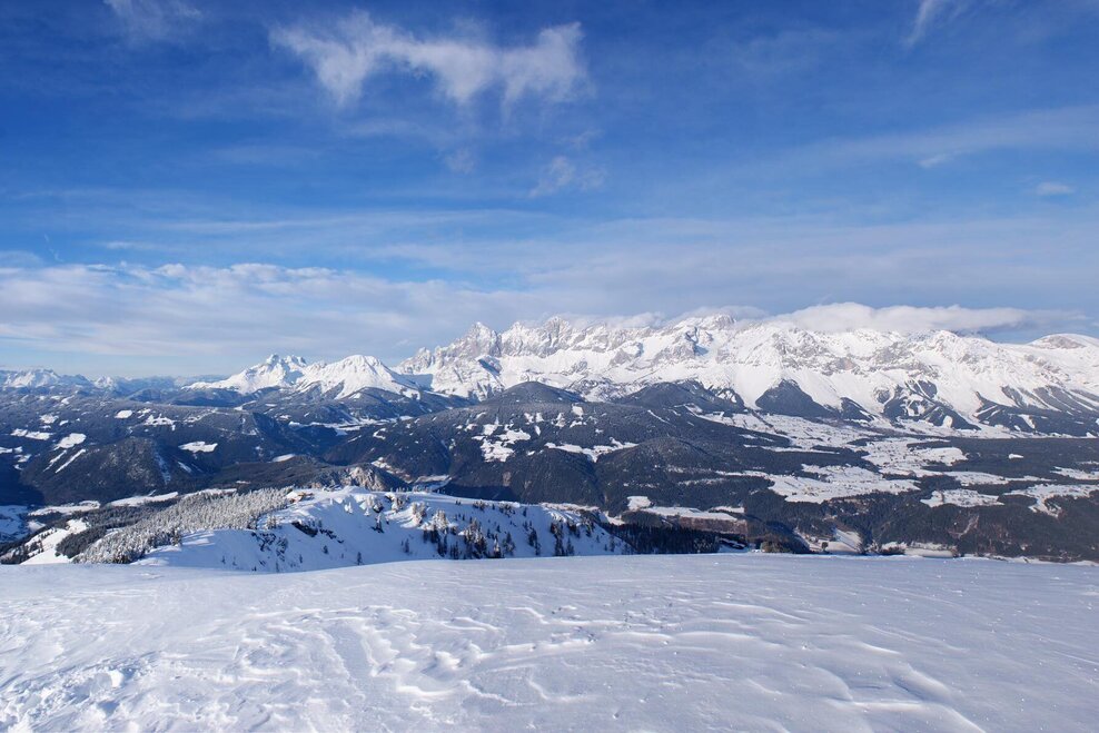 From Gleiming you take the Silver-Jet gondola and the 6-seater chairlift Gasselhöhe to the Reiteralm. From the top station of the chairlift you start with the snowshoes in southern direction. A first easy ascent brings you to a small hill before the further ascent to the Gassehöhe begins. Arrived at the summit cross of the Gasselhöhe you can enjoy the wonderful view of the Schladminger Tauern, the Dachstein massif and the Enns valley.