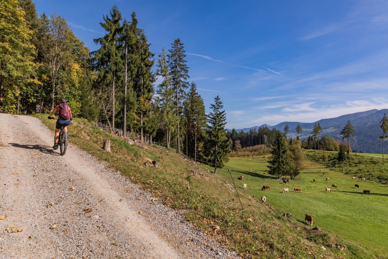 Varied tour on the sunny side of the upper Ennstal. After short asphalt passages, the tour alternates between forest paths and narrow but easy to drive paths. Fancy more single trails? Then combine the tour with the Vorberg Trail and Horner Trail!