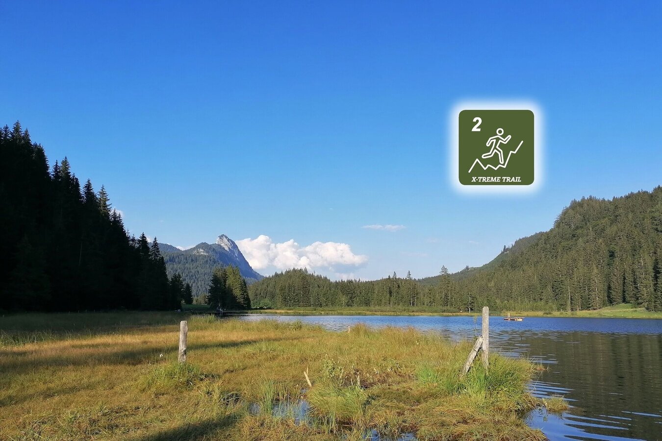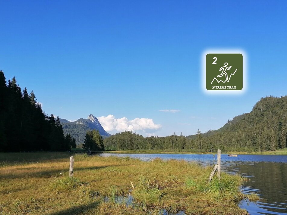 From the starting point GH Weitgasser, this trail also first leads over the Fürstensteig in the direction of Stainach, where the first real climb then leads up to the Leistenalm. After a few meters in altitude, you pass directly by the Spechtensee. From there it goes first still over an asphalt section, until it goes again over a forest road in the direction of Aicherlkar. Forest paths, single trails and an alternation of up and down passages lead you past the Aicherlstein.