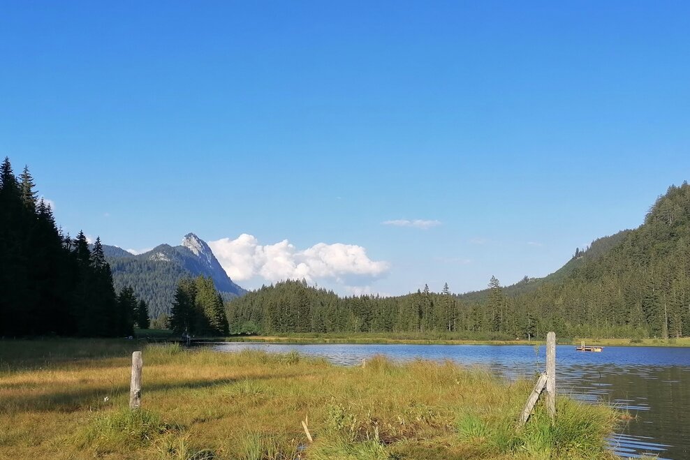Next to the communal garage you hike on a forest road marked 296 towards Spechtensee. You reach a forest road fork and shortly afterwards you turn right in a clearing and hike over the Seeriedl over to the Spechtensee. On the northern bank there are some nice places to linger, and a little further ahead the Spechtenseehütte invites you to stop off. After a rest, walk along the eastern bank on path #288/#9 and turn right at the end of the moss meadow onto the Spechtenseerunde around the lake. Now walk west through the valley until you reach the road. Turn right there and after just a few minutes you will be back at the Wörschachwalderhof.