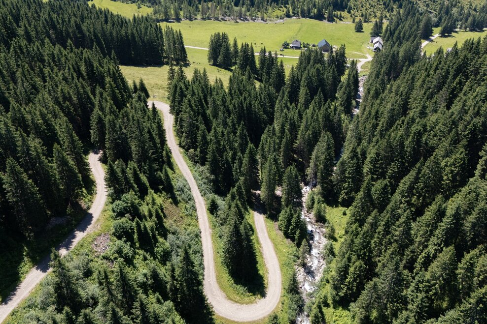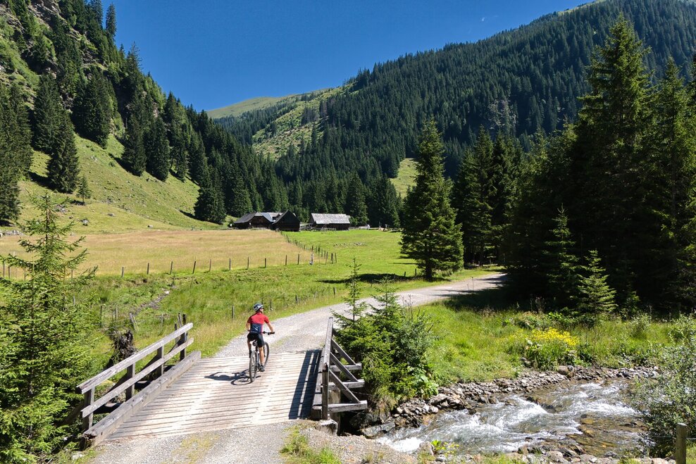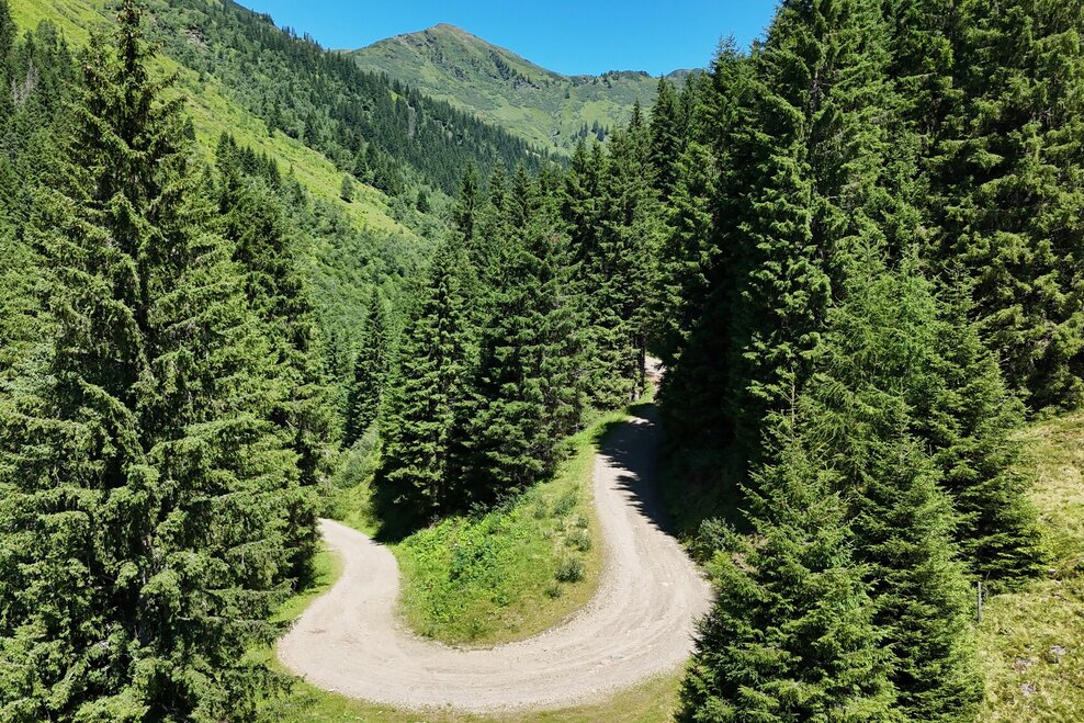 From Donnersbachwald via the little-used road to Hinterwald and from there via the shared single trail to just before the idyllic and pure Lärchkaralm. Along the forest road you can stop at two huts in the Lärchkar and then strengthened via the forest road to reach the Stallaalm.