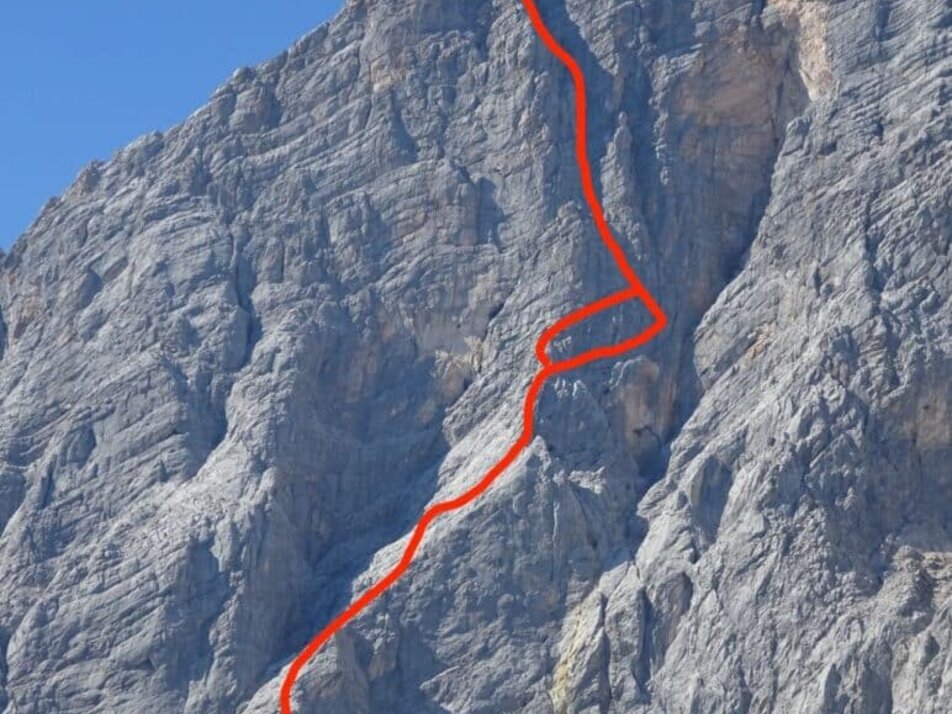One of the great climbing classics in the Northern Limestone Alps. First climbed in 1909 by the two brothers “Irg” and Franz Steiner, who were the first to find a line directly through the imposing 850-meter-high south face.