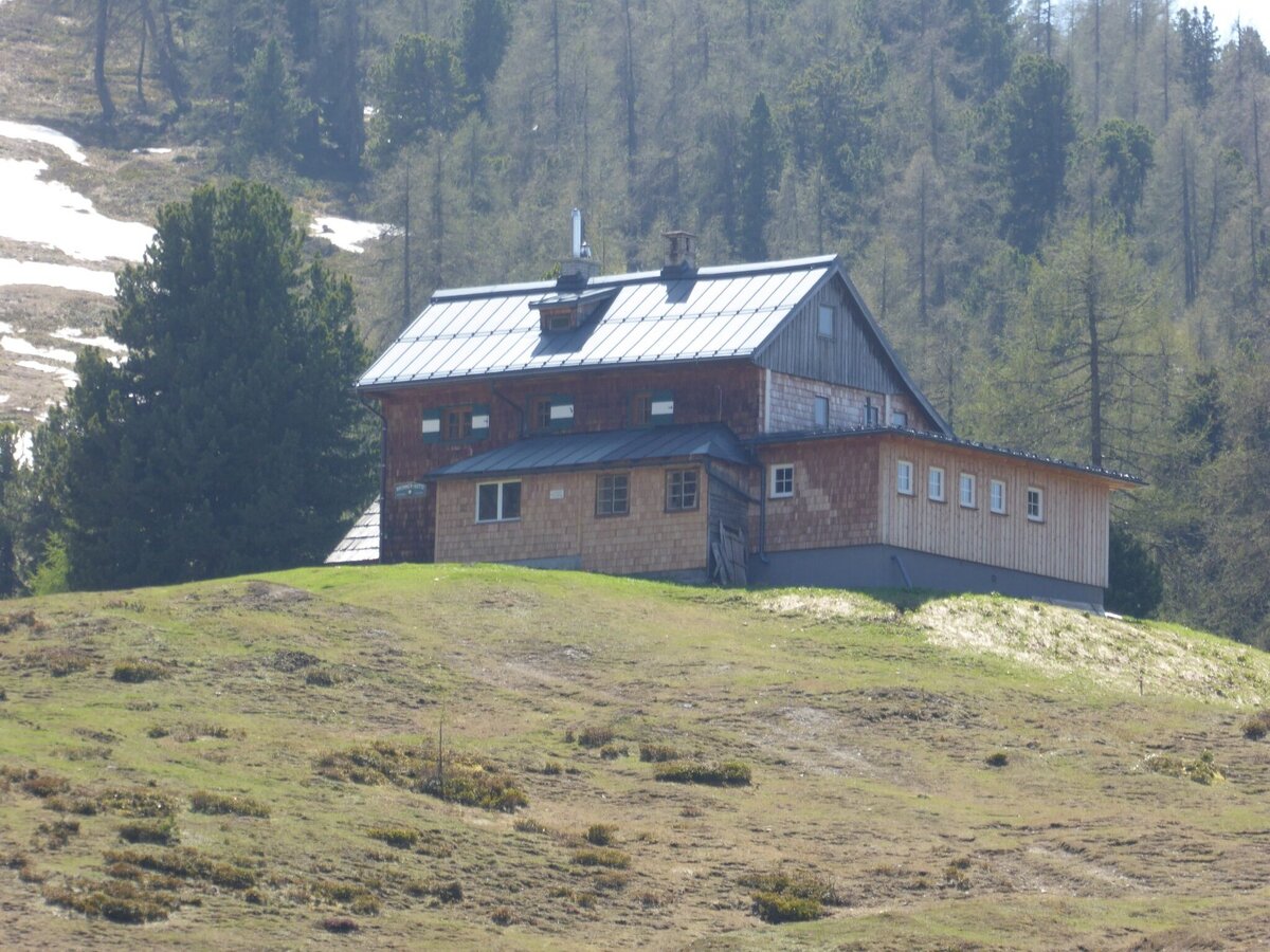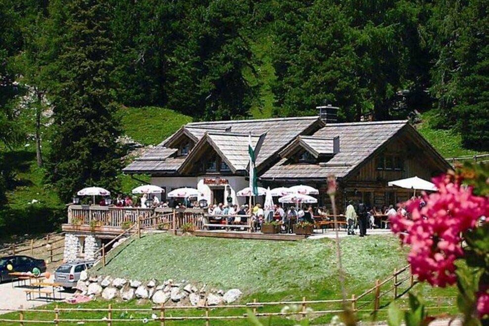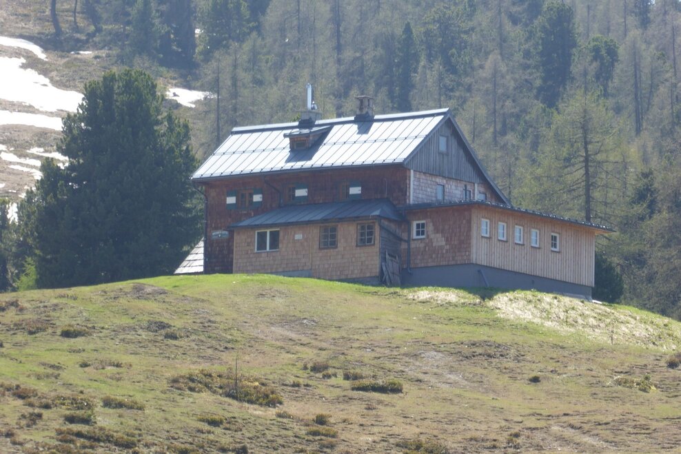 You hike past the Rosemi Alm in a few minutes to the connection to the AV path #675. It now goes uphill to the wayside cross in front of the Stoderhütte. There you walk directly in front of the Stoderhütte to the right down the forest path until you reach the crossroads with the sign "Gröbminger Blick". The short detour to the "Liebesbankerl Gröbminger Blick" is rewarded with a wonderful view down to Gröbming. Then you hike back to the forest path and over the Stoderalmboden to the Brünner Hütte (not serviced) and from there slightly uphill back to the Stoderhütte and the Steinerhaus and your starting point.