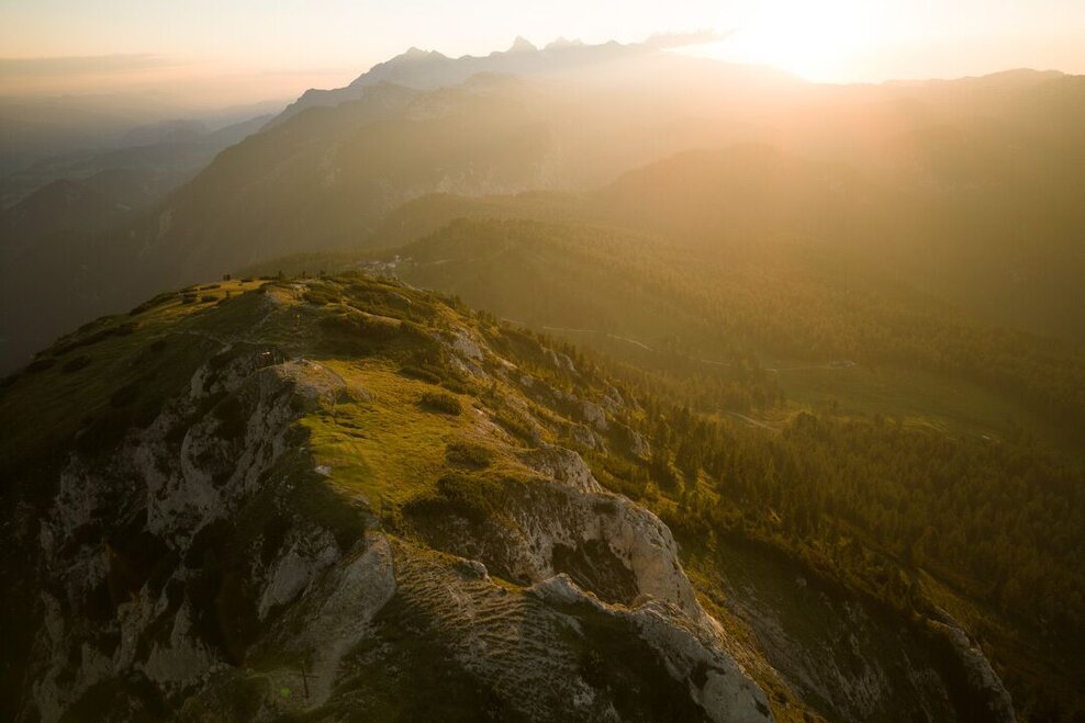 Hike to the summit of the Stoderzinken with a magnificent view of Gröbming, the Dachstein massif and the lower Ennstal. The hike to the summit of the Stoderzinken is a special experience. The ascent from the hiking trail heads at the huts, which leads through a beautiful larch, stone pine and mountain pine forest. Immerse yourself in the natural experience of the mountain forest at the tree line. From the summit there is a wonderful 360° all-round view and a spectacular view down into the Gröbming Basin and the market town of Gröbming. A special experience is a sunrise hike on the Stoderzinken.