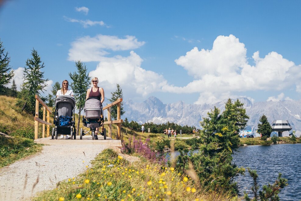 This short walking loop at Reiteralm is perfect for the whole family. The route, which is suitable for buggies runs along gravel trail and a short section of gravel road. You reach the starting point via Preunegg-Jet cable car from Bankwirt inn in Preuneggtal. On top, at Gasselhöh-Hütte and Reiteralmhütte the walking route takes you to the "Summer Snow" exhibition, Reiteralmsee Lake and the "Summer Snow Groomer".