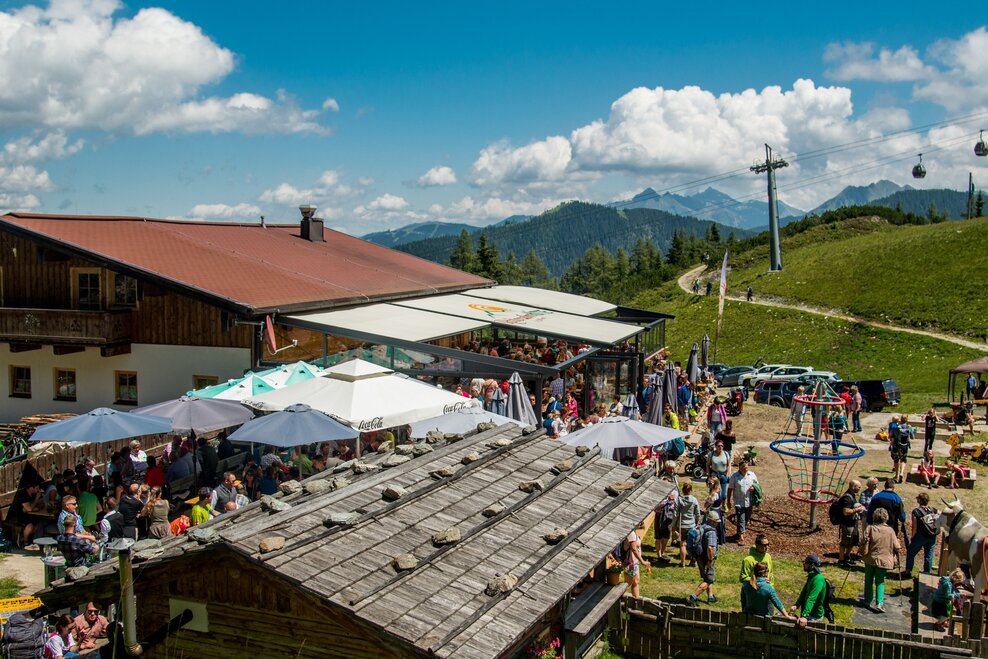 From the small pond you walk up via 2 turns and cross over a meadow (a ski piste in winter) towards Reiteralmhütte Inn. After a short walk uphill you reach the trail head at the mountain terminal of Preunegg-Jet cable car again.