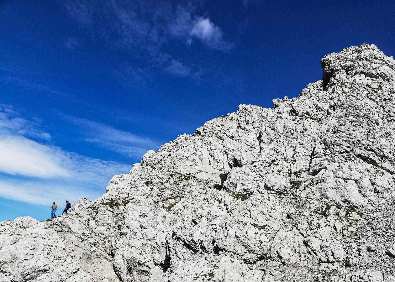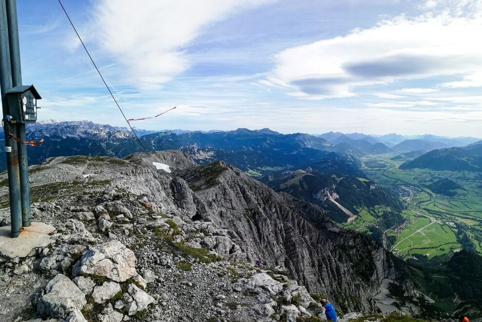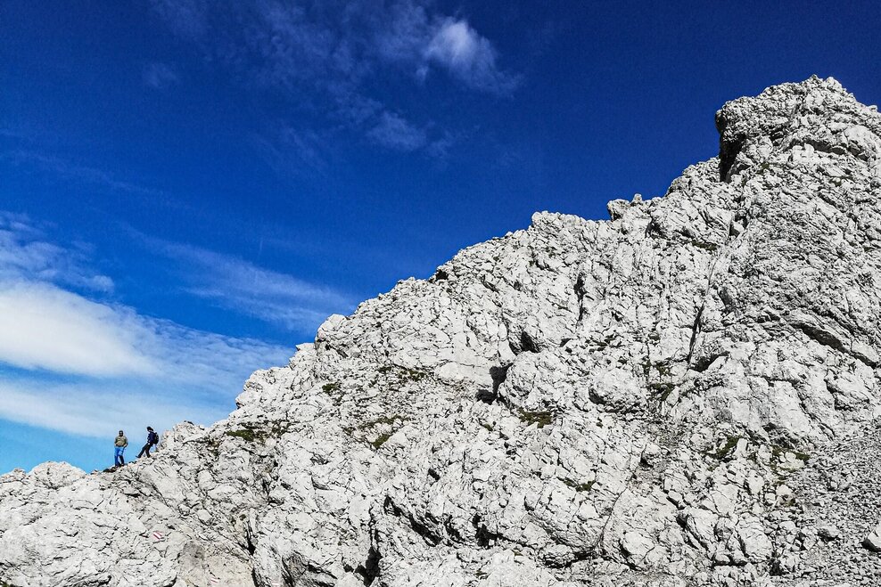 We start at the Kulm mountaineering parking lot. The path leads you first through the forest, past a memorial plaque, becoming steeper and steeper uphill. It goes over scree and loose stones to the first rope-secured passage. There you continue into the scree cirque below the Schartenspitze and cross in a southeasterly direction. After the steep ascent over loose scree, further rope-secured climbing passages follow up to the plateau. You have already done most of it. You only have to pass the bivouac box and reach the summit cross. Your feeling of happiness is simply phenomenal. Still flashed but physically well rested, you climb back to the starting point via the ascent route.