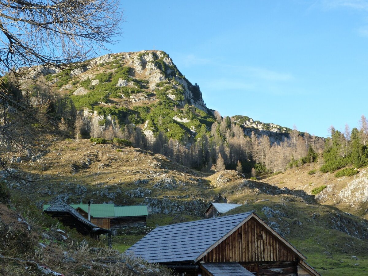 The hike up to the Stornalm takes us mostly through a beautiful mixed forest, the trail often crossing the forestry road. The higher we get, the more dominant the larch become, especially in the area of the Gseng Wand, where the trail becomes quite exposed as it makes its way around a rocky outcropping. Shortly afterwards, we reach the first huts of the beautiful Stornalm. If you find yourself here in early summer, you will be surprised by the diversity of flora. Small bands of rock interspersed with flowers encompass this arena which opens up towards the south, granting us magnificent views all the way out to the Höchstein. The trail now continues through forest which is becoming ever sparser, and across alpine pastures directly to the southern foot of the Kufstein. The hike up to the summit is steep, the trail is narrow and, once above the tree line, the sun beats down on the southern slopes. At the big summit cross, we can soak in the magnificent 360° views. To the N are the undulating waves of the karst high country, in the W the Dachstein skirted by a glacier. The ranks of alpine peaks that make up the Niedere & Hohe Tauern to the S, while the E is dominated by the striking peaks of the Stoderzinken, the Kammspitze and the Grimming.The quickest descent takes us back the same way – though in nice weather, the hike down via the Grafenbergalm is even more beautiful. Gently downhill through alleys of larch, later through pine forest and down to the beautiful alpine hut. At the Grafenbergalm trail crossing, we follow the markings for path No. 666, taking us across alpine pastures and back to the Stornalm. Variant: via Grafenberg and Ahorn lakes to Weissenbach.
