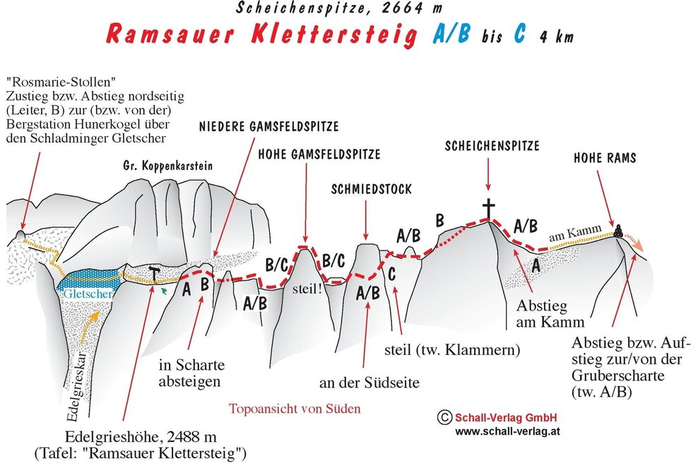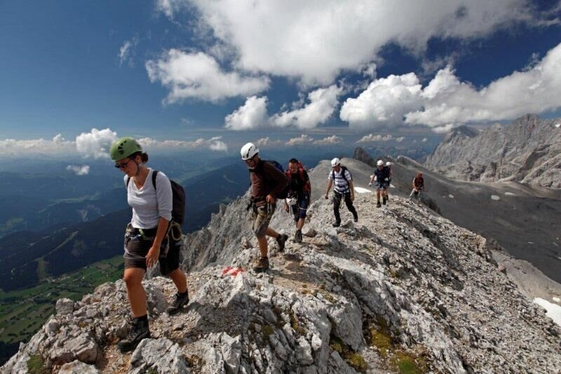 Due to the length, high alpine location and the sporty route, this climb is only recommended for fit and experienced via ferrata climbers.