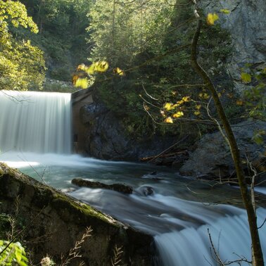 From Seeleiten car park, some very exciting stages of the Wild Waters experience begin – along the Riesach Falls Forest trail and the alpine trail "Höll" you will be able to experience the pure power of water. Magnificent Riesach Waterfalls drops a total of 140 metres in two tiers to the valley below – with viewing platforms that put this, the highest waterfall in Styria, practically within arm’s reach. A little later, you can step out onto a 50 meters-long cable footbridge, gazing from a dizzying height down on the Wildbach as it flows through Höllschlucht canyon. Afterwards, you will make your way safely via countless steps Höllschlucht canyon until you reach the Gfölleralm, then a few minutes later, the picturesque shores of the lake Riesach. On the left shore, the Kaltenbachalm invites you to take a well-earned break. For your return to the Seeleiten car park, we recommend the pleasant forest lane.