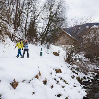 The trail runs along the Untertal valley following the creek's way out of the valley. The Planai-Hochwurzen buses run between Schladming and the Seeleiten parking area at the valley head. There are several bus stops in between so you can also just take some stages of the entire trail.