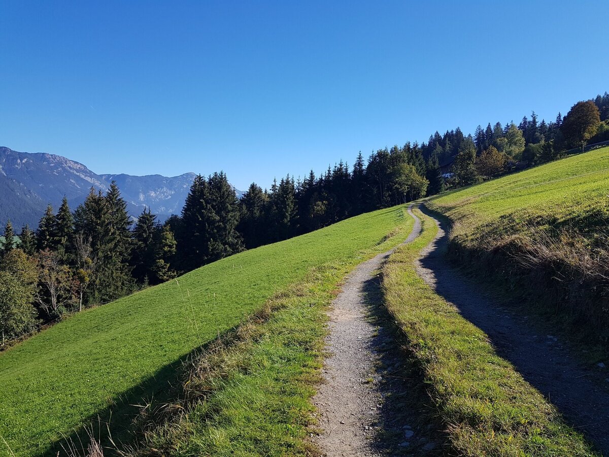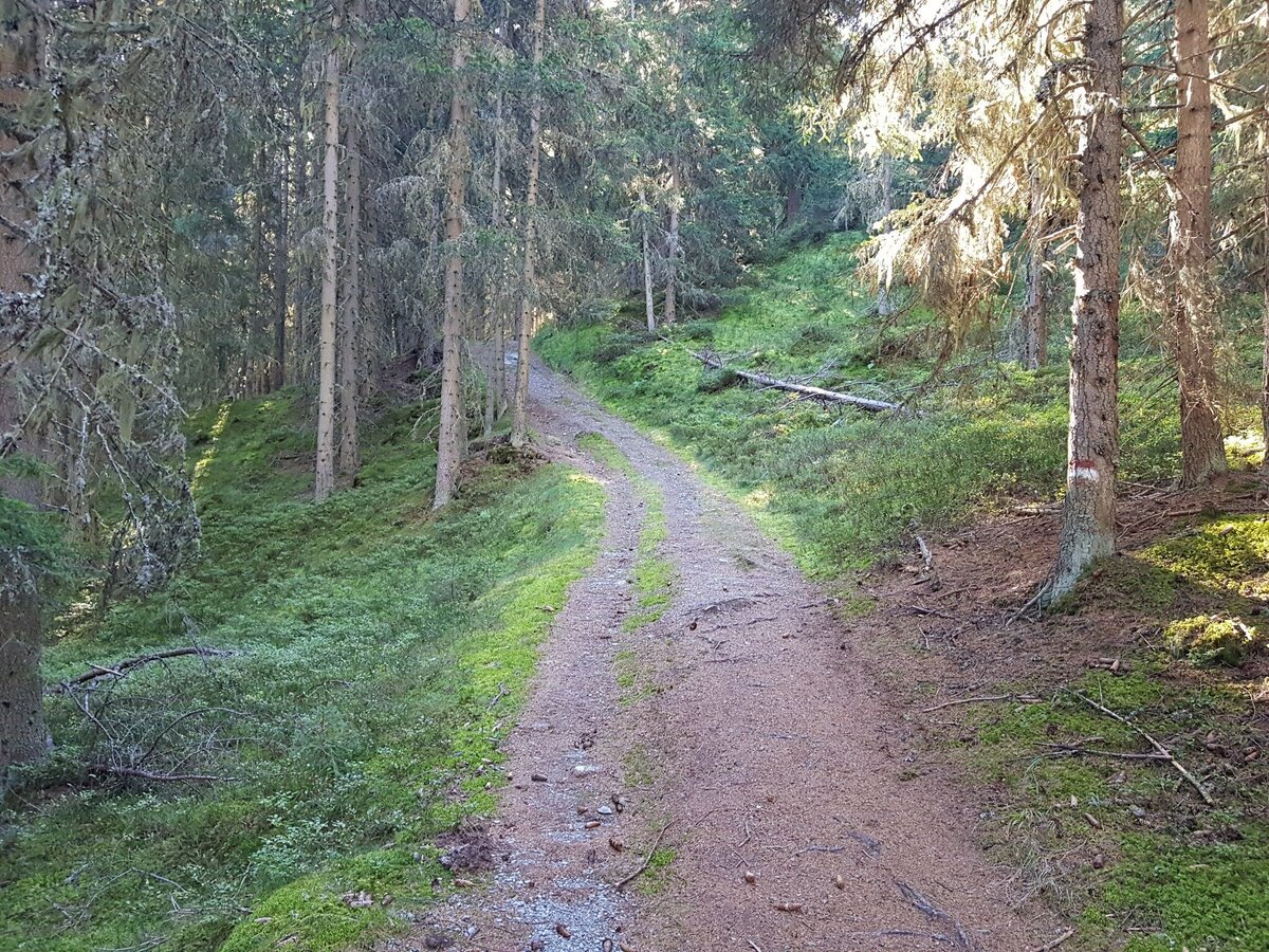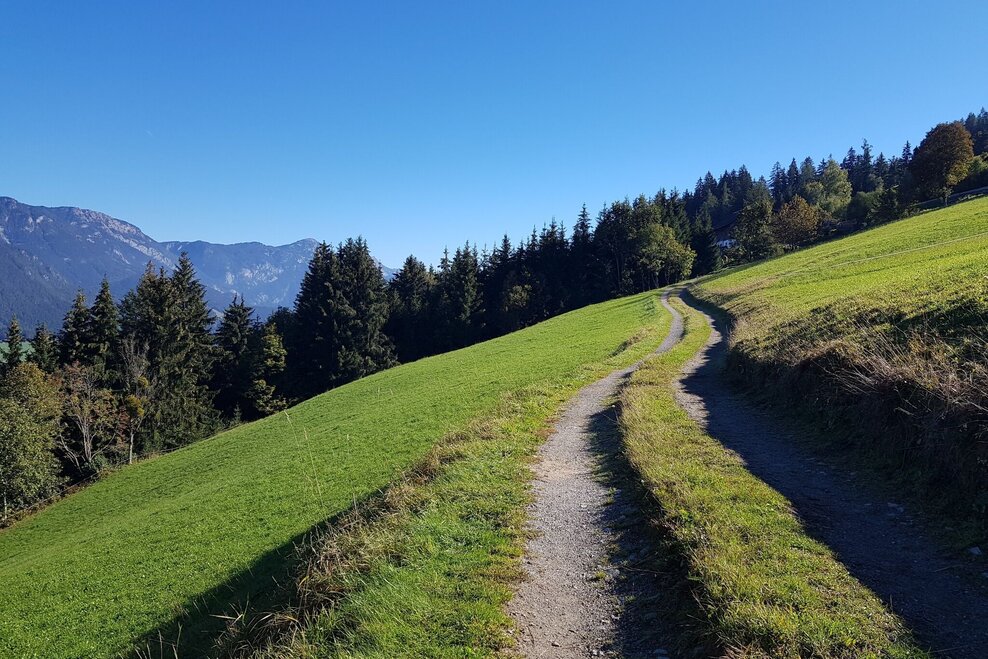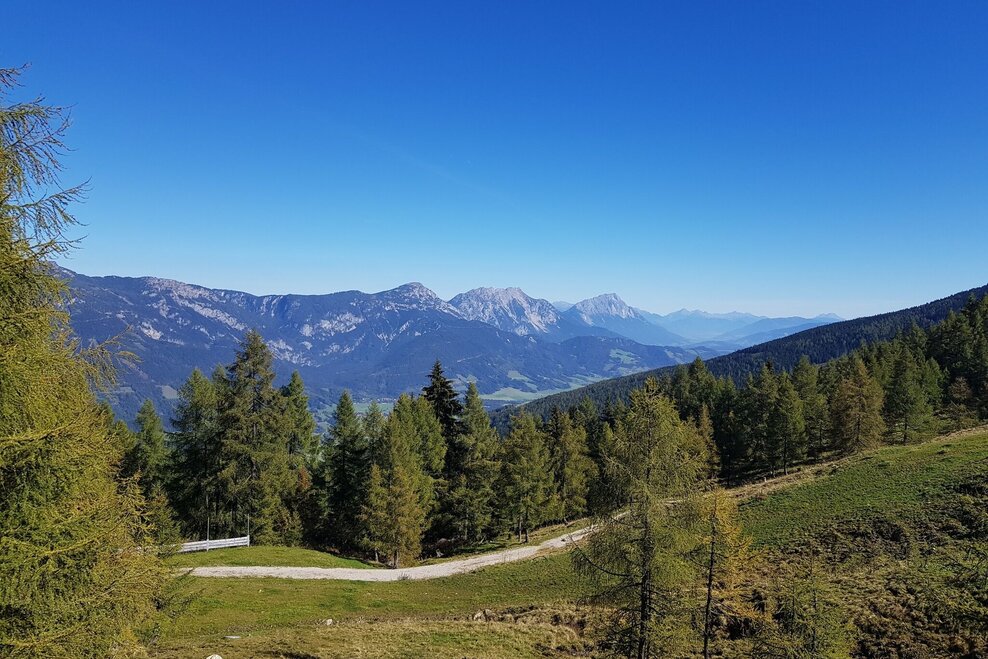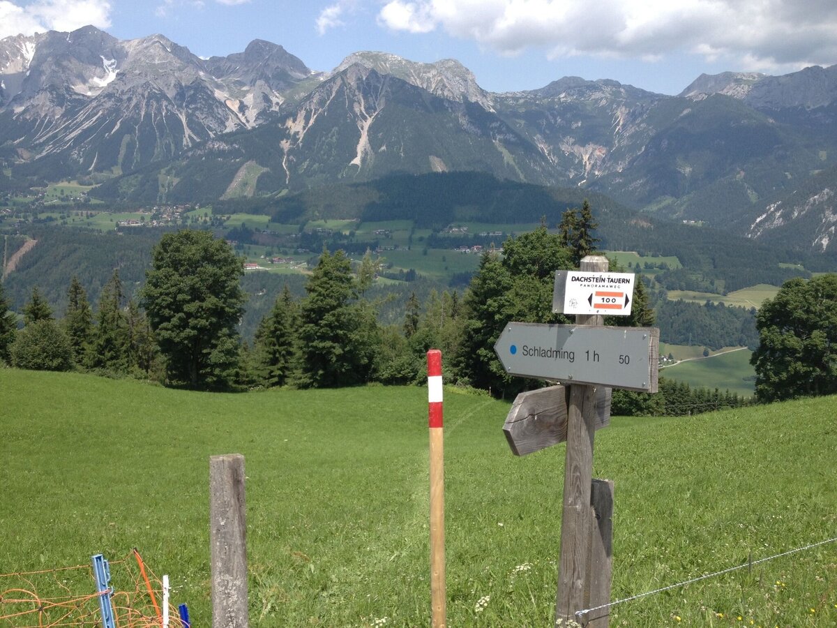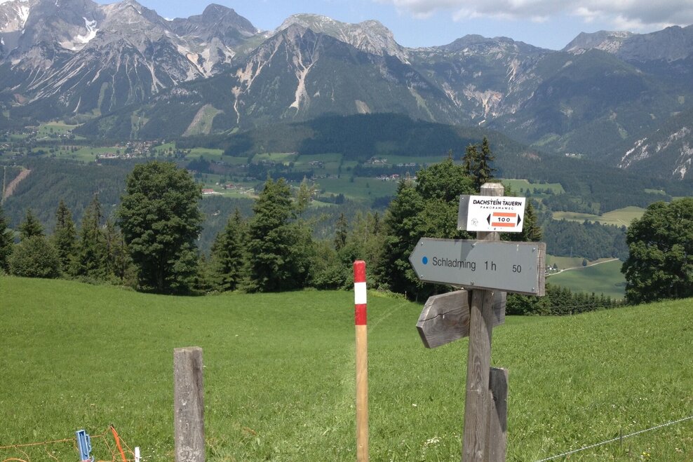 From the hiking trail head at Planai stadium follow Coburgstraße street eastwards and make a right at apartments "Zur Barbara" into "Trenkenbachweg" road. Walk up the road to its end and then follow the trail signs of trail n° 50. Through the forest you hike uphill to the Spreizenberger farm. Towards Southeast you continue uphill, walking through sections of forest and over alpine meadows. At the Rinderbichler farm you cross over Planaistraße street and then follow the trail to Hotel Schröckerhof. Afterwards you cross over "Brandweg" road and soon reach the Wieslechnerhof farm. From there it is another 15 to 20 minutes to Wieslechalm. Here you have accomplished about half of the route. Take a break on the terrace of Wieslechalm and enjoy the great view to the plateau of Ramsau and Schladming.