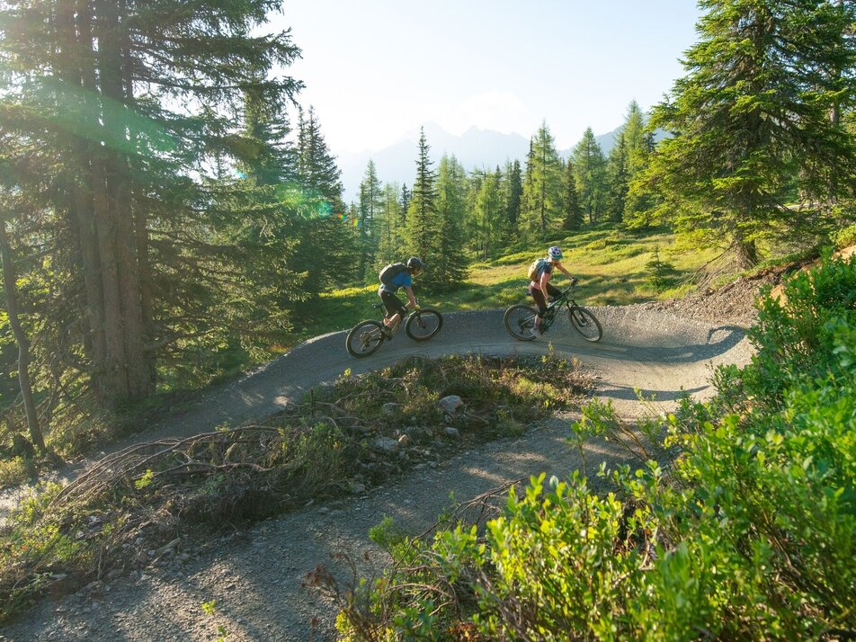 The Uphill Flow Trail gives you a big grin when riding uphill, no matter if you are on a mountain bike or an E-MTB! Once at the top, after a refreshment, you can take on the flowline downhill.Which bike is the trail suitable for? The fun factor is highest with the eMTB. The trail is also much more fun than a forest road for bikers without a motor. Is there a fee for the trail? As with all trails in the Schladming bike park, a trail ticket is required. For all those who have a bike ticket for the cable car, the Uphill Trail is of course included. All those who want to explore the Bikepark without cable car support pay € 7 bike park admission. How much costs the ticket for the Uphill Flow Trail? A valid bike ticket includes the Uphill Flow Trail, without a bike ticket the bike park entrance costs € 7. This can be bought at the Planai cash registers or from the machine at the start portal.Is there a discount for summer card owners? There is no discount on the trail ticket for 6€, but there is a discount for the cable car tickets with the summer card. You can find all prices here!How do you get to the start of the Uphill Flow Trail? Our recommendation: take the Planai cable car to the middle station and start from there. How difficult is the Uphill Flow Trail? If you master forest roads in the mountains safely, you will also feel comfortable on this trail.