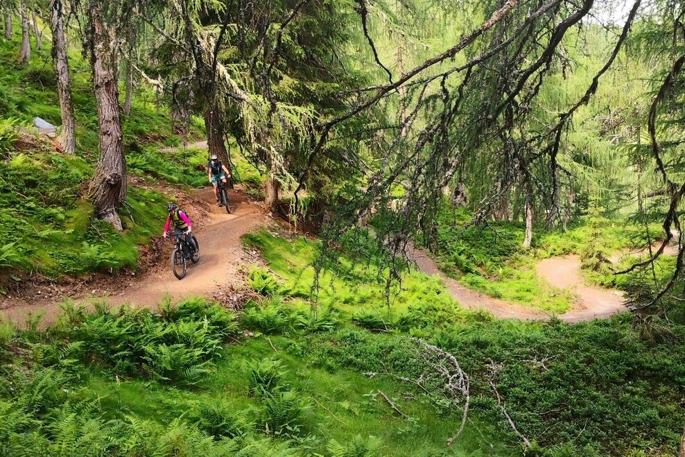 Mit dem eMTB ist der Spaßfaktor am höchsten. Der Trail ist aber auch für Biker ohne Motor deutlich spaßiger als eine Forststraße.