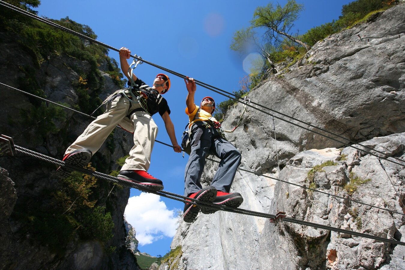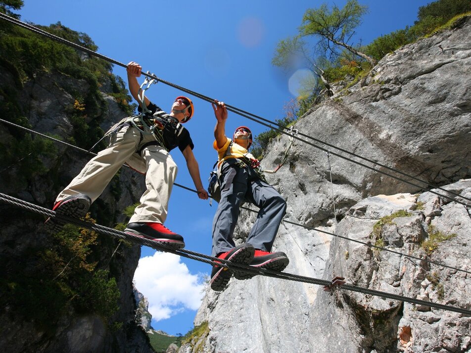 A samall, sporty and rather "zesty" via ferrata close to the valley, making it very suitable for climbers who are not necessarly athletes. The via ferrata itself is short but sweet. The natural setting was used to perfection - two beatiful rope bridges and some steepish rockfaces are the result. The gorge is a grat family hike. Whilst sportierfamily can simply enjoy the trail through the gorge.