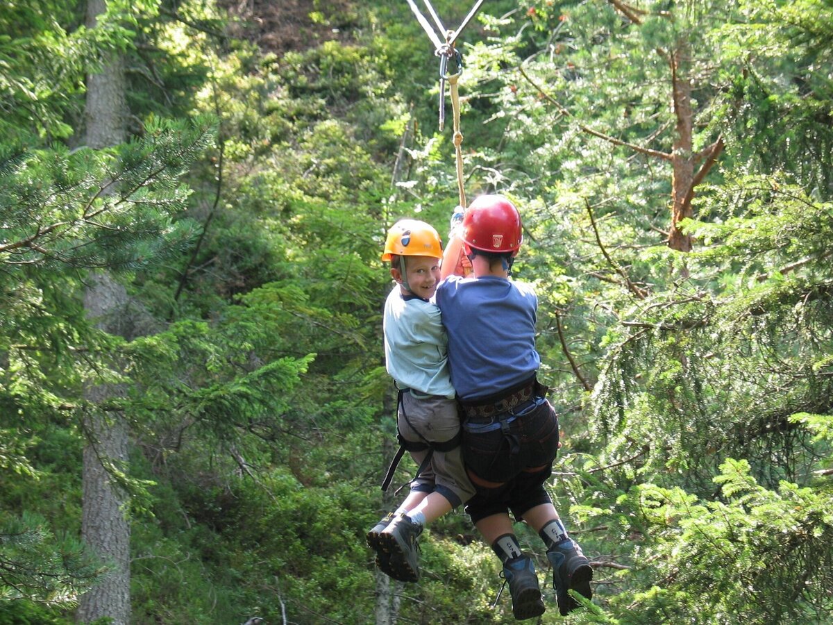 The Kali via ferrata is the ideal entry point for children from the age of 7 to make their first attempts on the rock. It reaches a maximum difficulty of B on the easiest variant, although short and steep variants up to C/D are also possible on the so-called "Gemsenturm". However, these are not mandatory and can be easily bypassed.