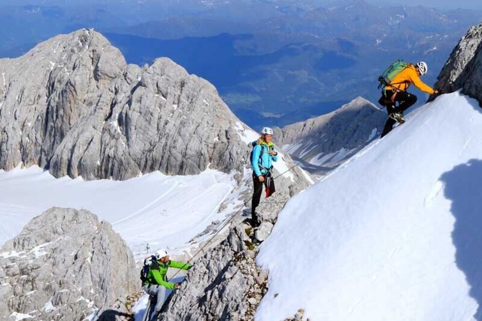 The climb to the top of the highest summit in Styria is an experience withmagical views enjoyed at almost 3000 m above sea level. The shoulder ascent in combination with the Randkluftsteig to the top of the Hoher Dacshtein is very doable in combination with the Dacshtein cable car. The short hike to the start, in particular, makes this via ferrata very attractive and popular. However, it should not be underestimated, not least because you are in high-alpine terrain.