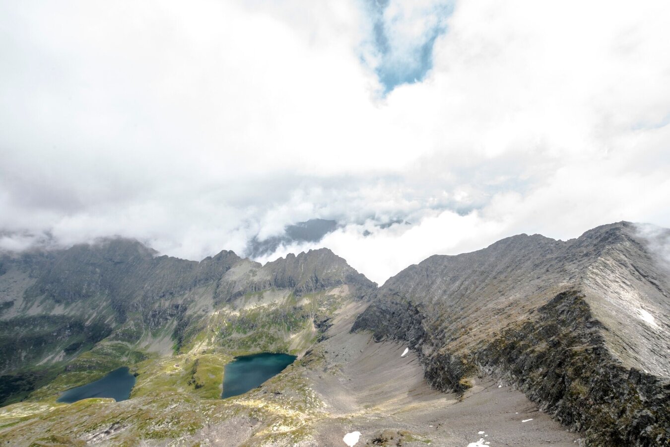 The descent can be done via the same route, though we recommend a small detour via Breite Scharte ridge and Klafferkessel, which is an Alpine plateau with smaller and bigger tarns.