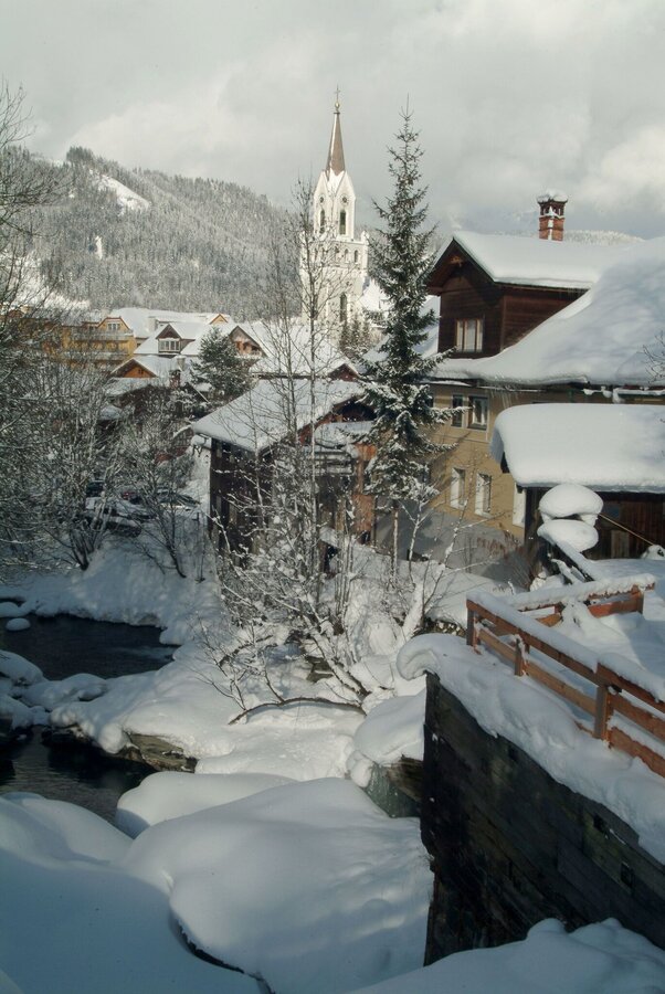 The Talbachklamm is especially enchanting in winter due to its bizarre ice formations and trees and bushes covered with hoar frost. However, because it is close to the Talbach, the path is often icy. Therefore we recommend being particularly cautious on this path, as well as wearing suitable boots or shoes with spikes. After about 2.5 km from the fire station in Untertal, you will reach the town of Schladming close to the Protestant church.