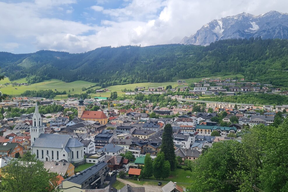 In only a couple of minutes you reach Berggasse street via a gravel trail. At Berggasse make a right and after 300 m make a right again into Schießstattgasse street, which takes you directly to the valley terminal of Planai cable-car at Planai-Stadium.