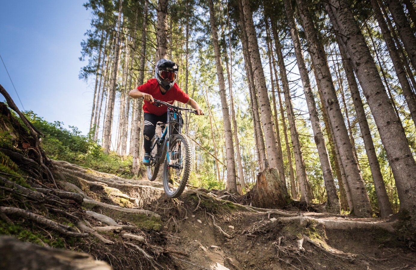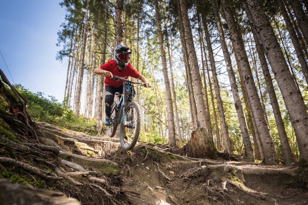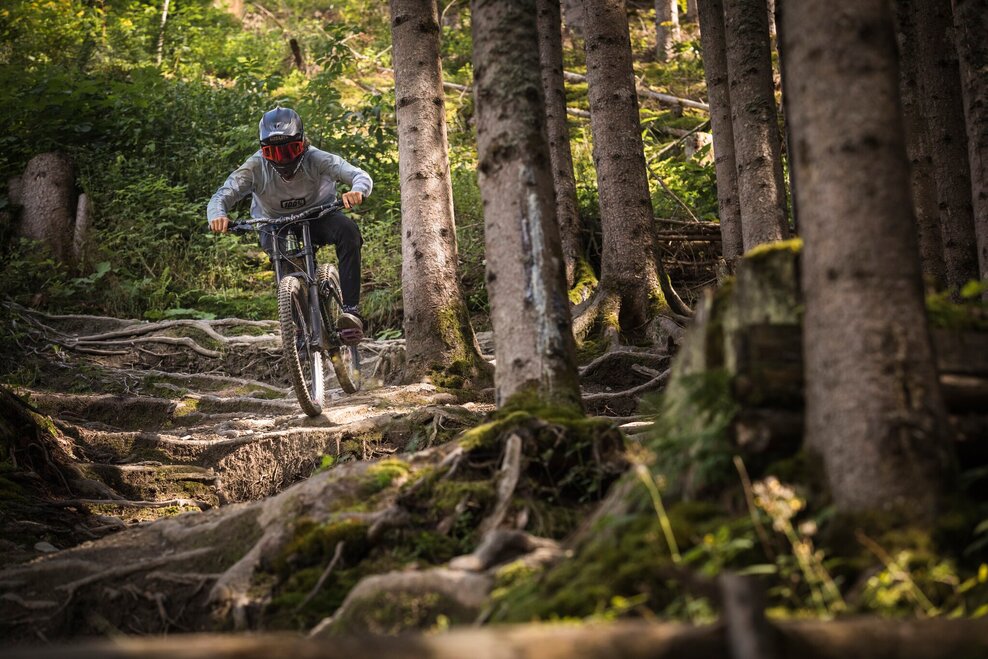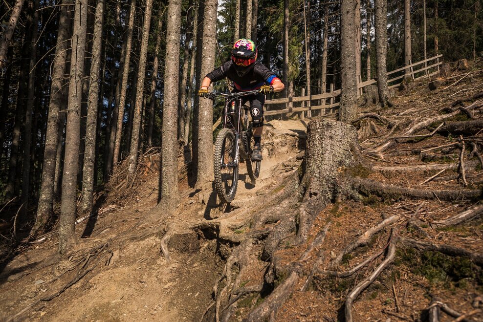 Die Worldcup Downhill schlängelt sich durch Gaps, Wurzeln und Anliegern von der Mittelstation der Planaibahn bis ins Tal.