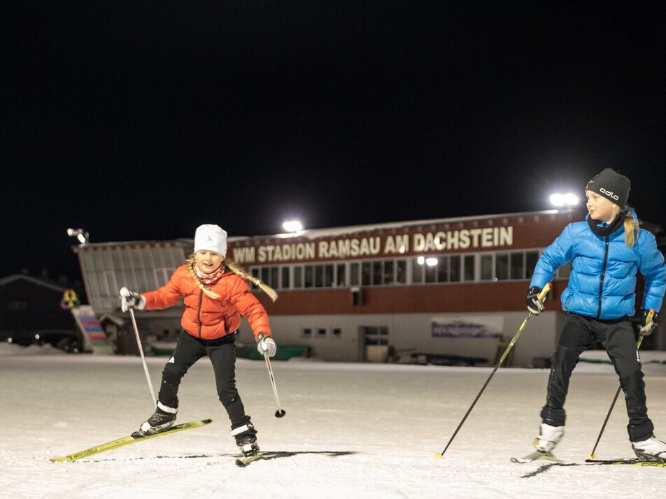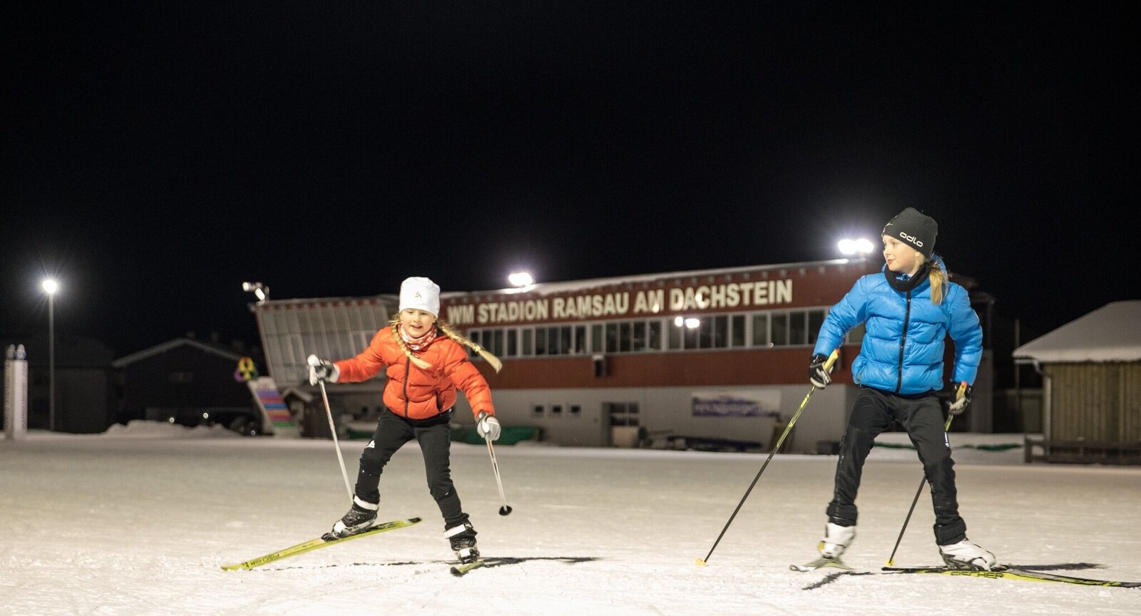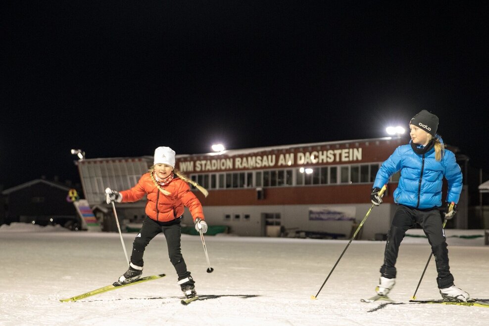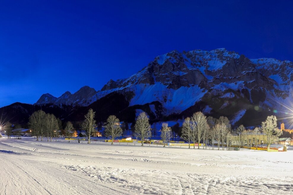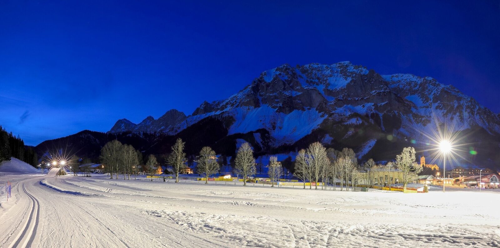 When the last rays of the sun disappear behind the mountains, the day also comes to an end on the sunny plateau. The fun of cross-country skiing is not over yet. Several tracks in the World Cup stadium and part of the standard West cross-country trail are illuminated in the evening. There are almost limitless cross-country skiing experiences in Ramsau am Dachstein.
