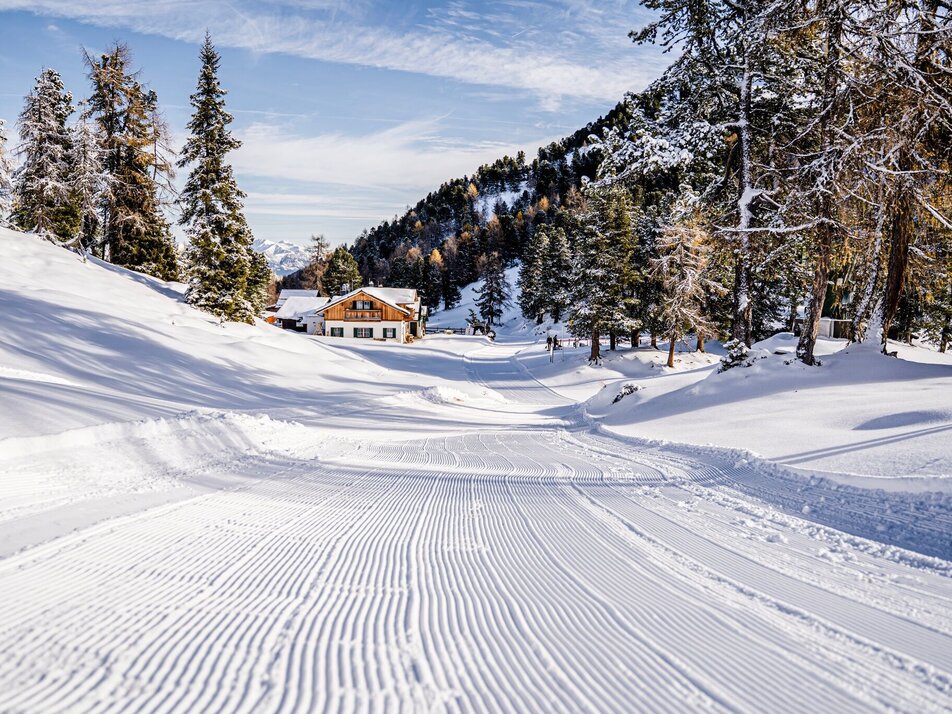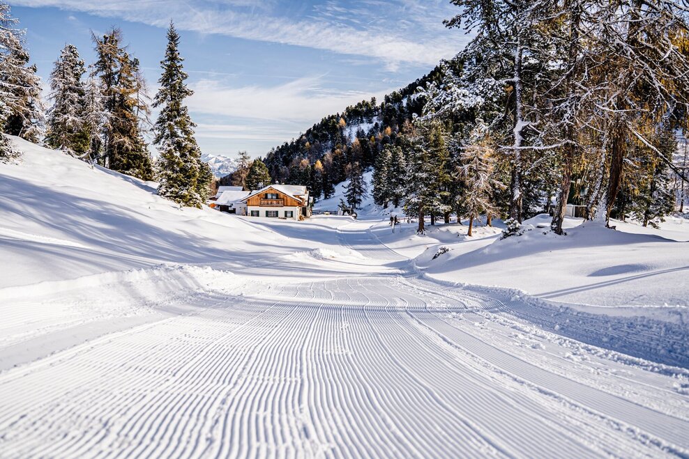 The round starts at Roßfeldpark near the Rosemi Alm. You walk uphill over a few curves to the Stoderhütte. From there it goes downhill along the prepared road towards Gröbming Blick and into the Stoderalm. At the Almboden you make two loops before the trail takes you back uphill over several curves and serpentines to the Stoderhütte. From there you take the well-known cross-country ski trail down to the parking lot.