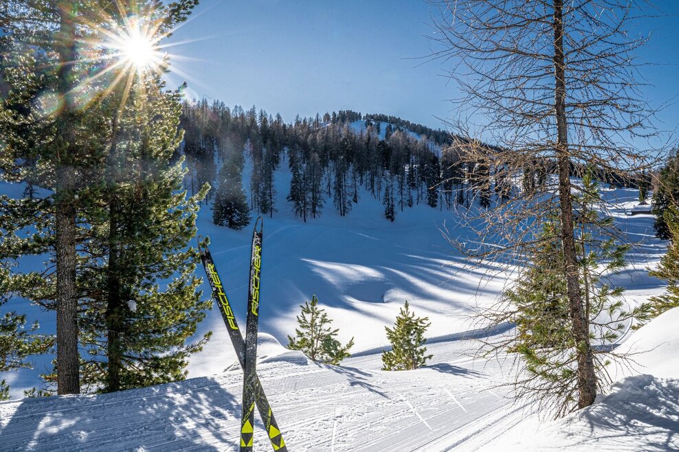 The skating trail at Stoderzinken offers incomparable panoramic views over the wintry landscape of the Dachstein plateau all the way to the Hoher Dachstein.