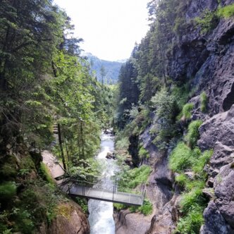 The Riesach waterfall is the largest waterfall in Styria. The "Alpinsteig through the Höll" leads over numerous stairs, paths and a suspension bridge along the Riesach waterfall to the Gfölleralm and the Riesach lake. This climb requires surefootedness and a head for heights and is not suitable for toddlers and dogs from the suspension bridge - you can still get to the beautiful Riesachsee via the forest road (junction in front of the suspension bridge).