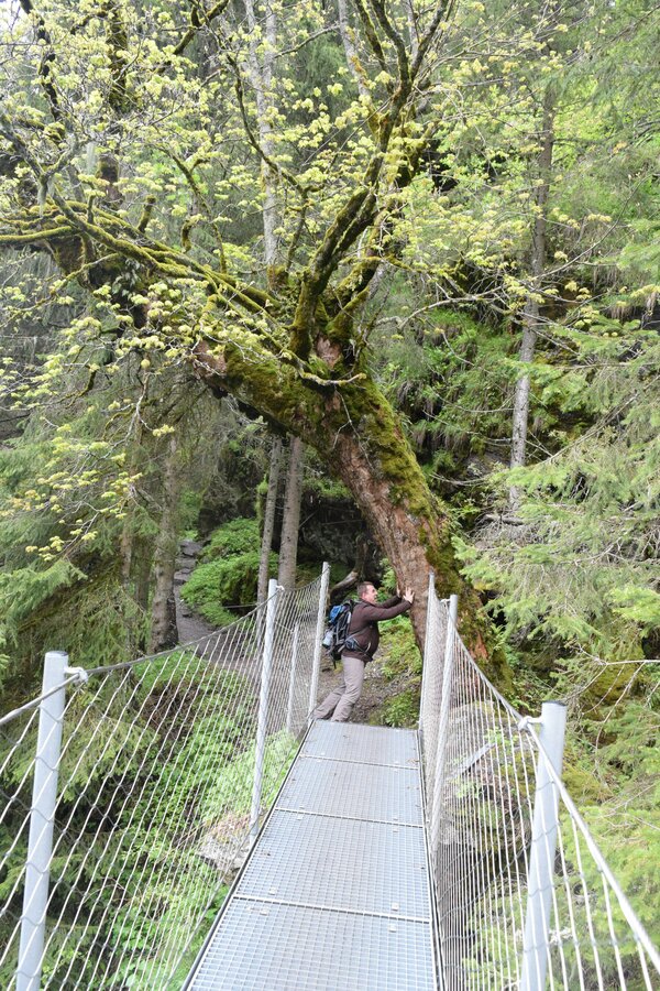 The Riesach waterfall is the largest waterfall in Styria. The "Alpinsteig through the Höll" leads over numerous stairs, paths and a suspension bridge along the Riesach waterfall to the Gfölleralm and the Riesach lake. This climb requires surefootedness and a head for heights and is not suitable for toddlers and dogs from the suspension bridge - you can still get to the beautiful Riesachsee via the forest road (junction in front of the suspension bridge).