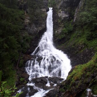 The Riesach waterfall is the largest waterfall in Styria. From the Riesach car park in Untertal, the "Alpinsteig durch die Höll" leads over numerous steps, trails and a suspension bridge along the Riesach waterfall to the Gfölleralm at Riesachsee. This trail requires surefootedness and a head for heights and is not suitable for small children and dogs from the suspension bridge onwards - you can still reach the beautiful Riesachsee lake via the forest road (turn-off before the suspension bridge).
