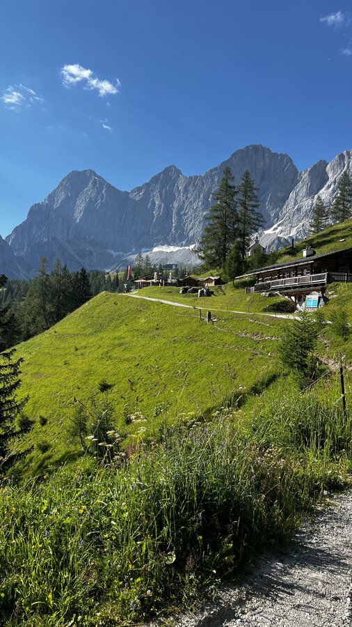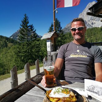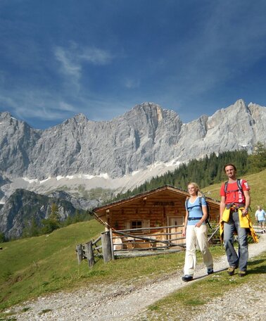 Our Alm is directly located at the foot of the Dachstein, in the middle of our own alpine pasture. Our pasture spreads across wide, partly grazing land and has been passed down in our family for generations. Due to the dissolution of the chalet, Fritz Schrempf decided to build a smaller Almhütte in 1980. Together with his wife Erika and his three children, they highly value tradition and folk music.