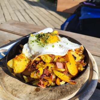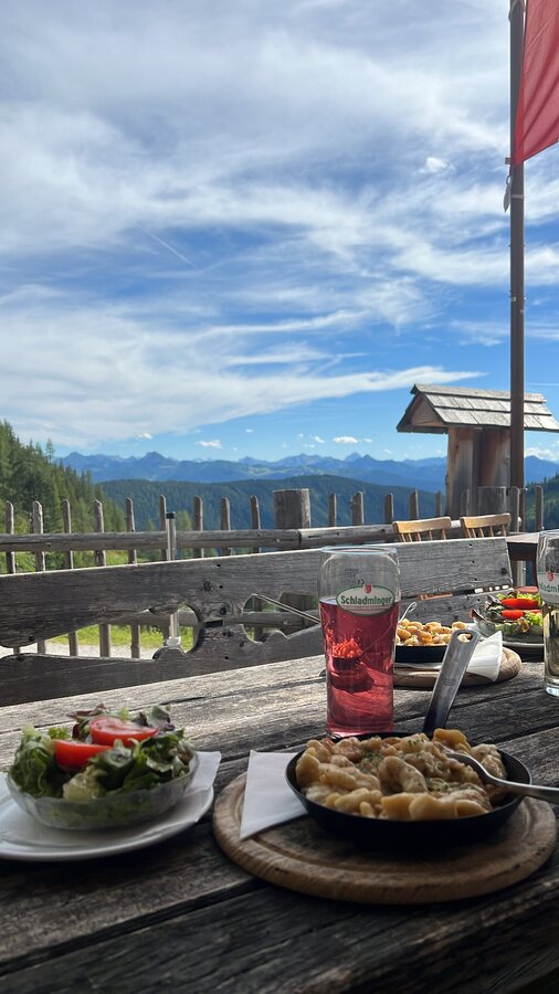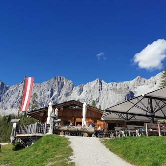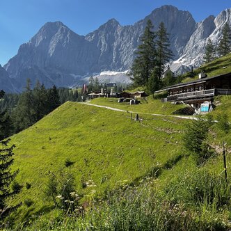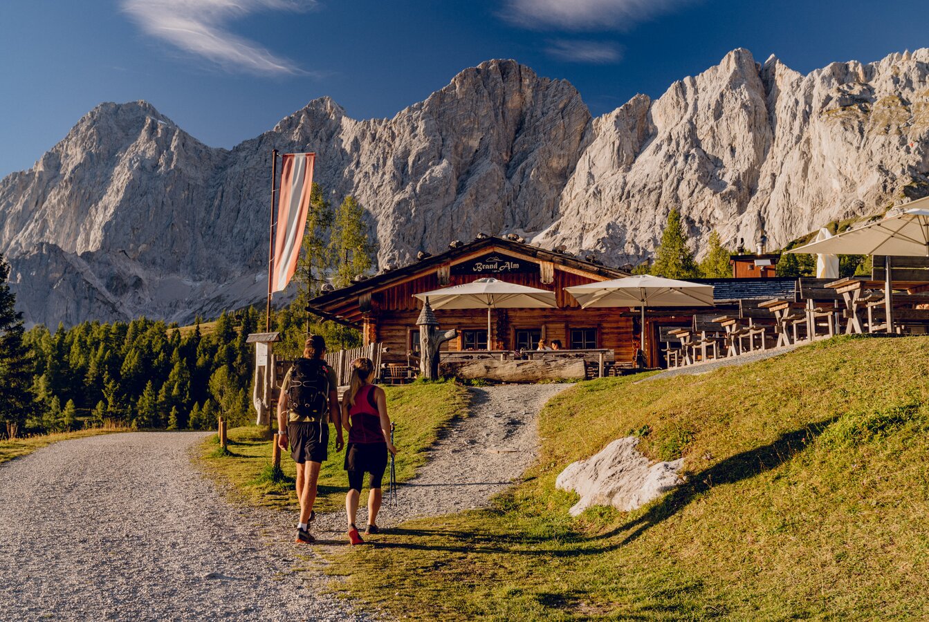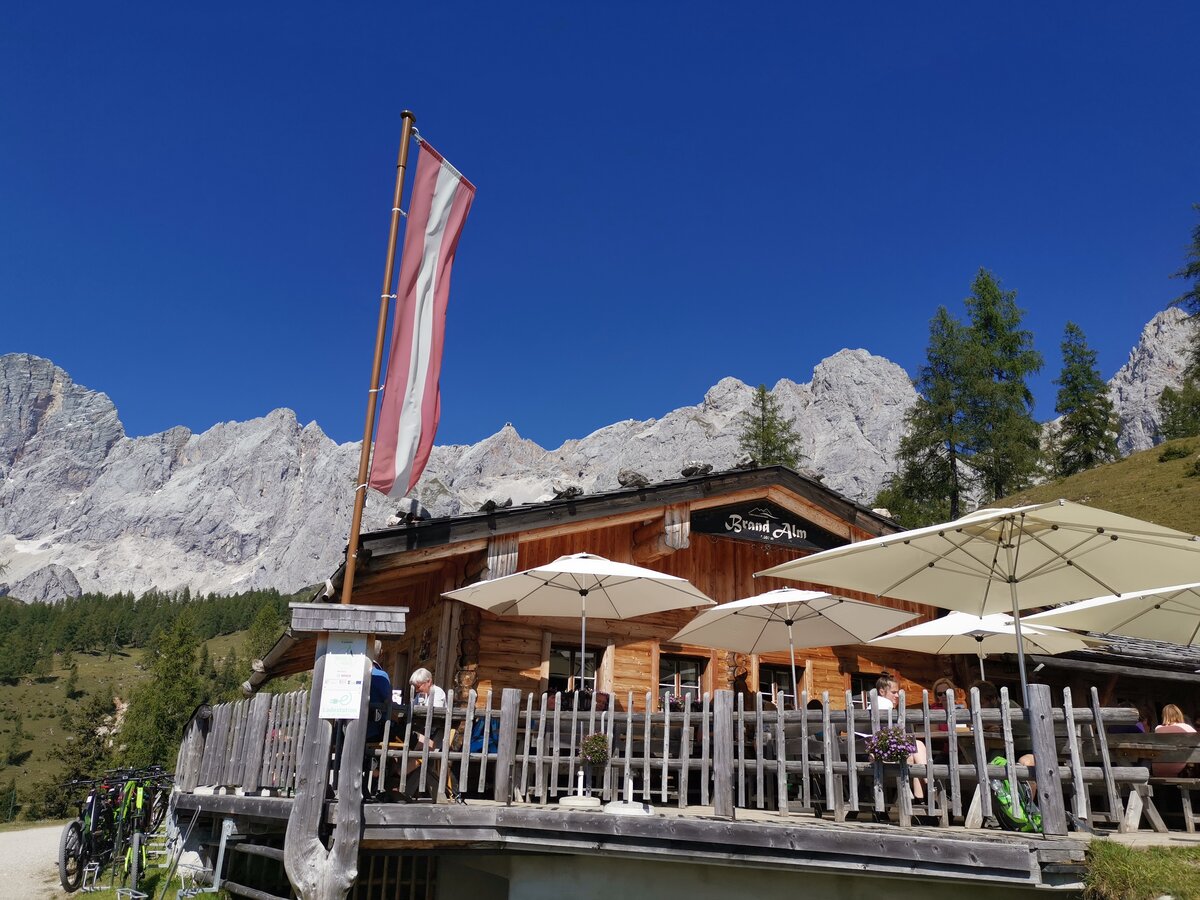 Brandalm is an idyllic place at 1.600 m above sea level. The hut is located directly next to the ski and walking path within Ramsau’s alpine pasture region to the foot of the Dachstein. The views onto the beautiful mountain ranges and the southern walls of the Dachstein massif, the Schladminger Tauern on the other side offer make their sun terrace a perfect place to rest. If it’s too chilly outside, you can warm up to some folk music next to the ceramic stove indoors and enjoy our warm hospitality.