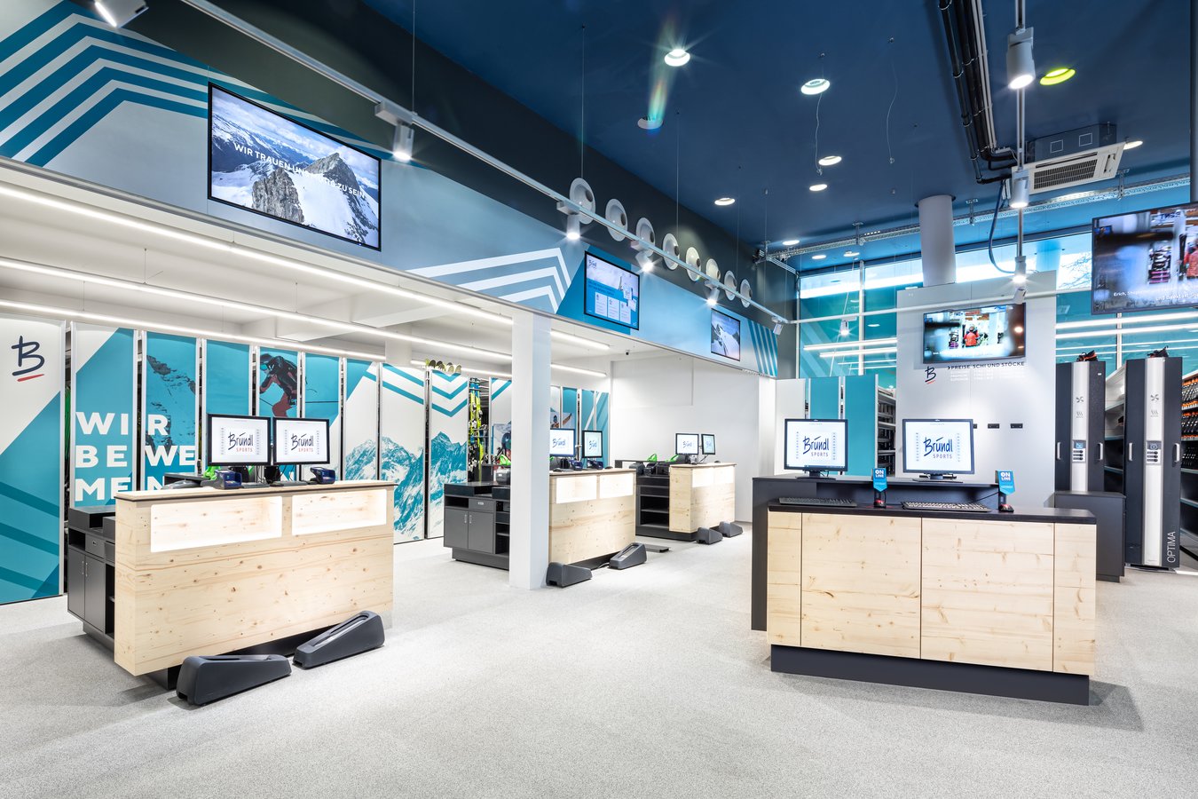 The Bründl Sports Shop Planet Planai is located directly next to the valley station of the Planai cable car in the Schladming-Planai ski area. In the sports shop you will find a wide range of various sports articles for winter & summer as well as ski service, ski rental and much more. The focus in winter is clearly on alpine skiing and ski tours.